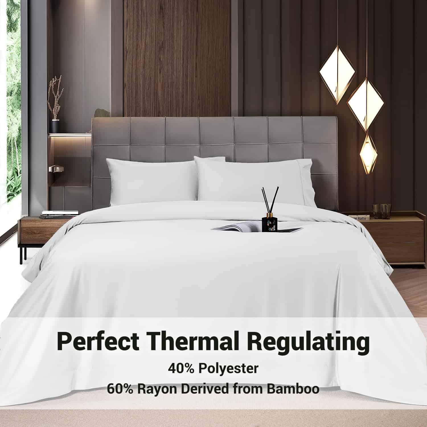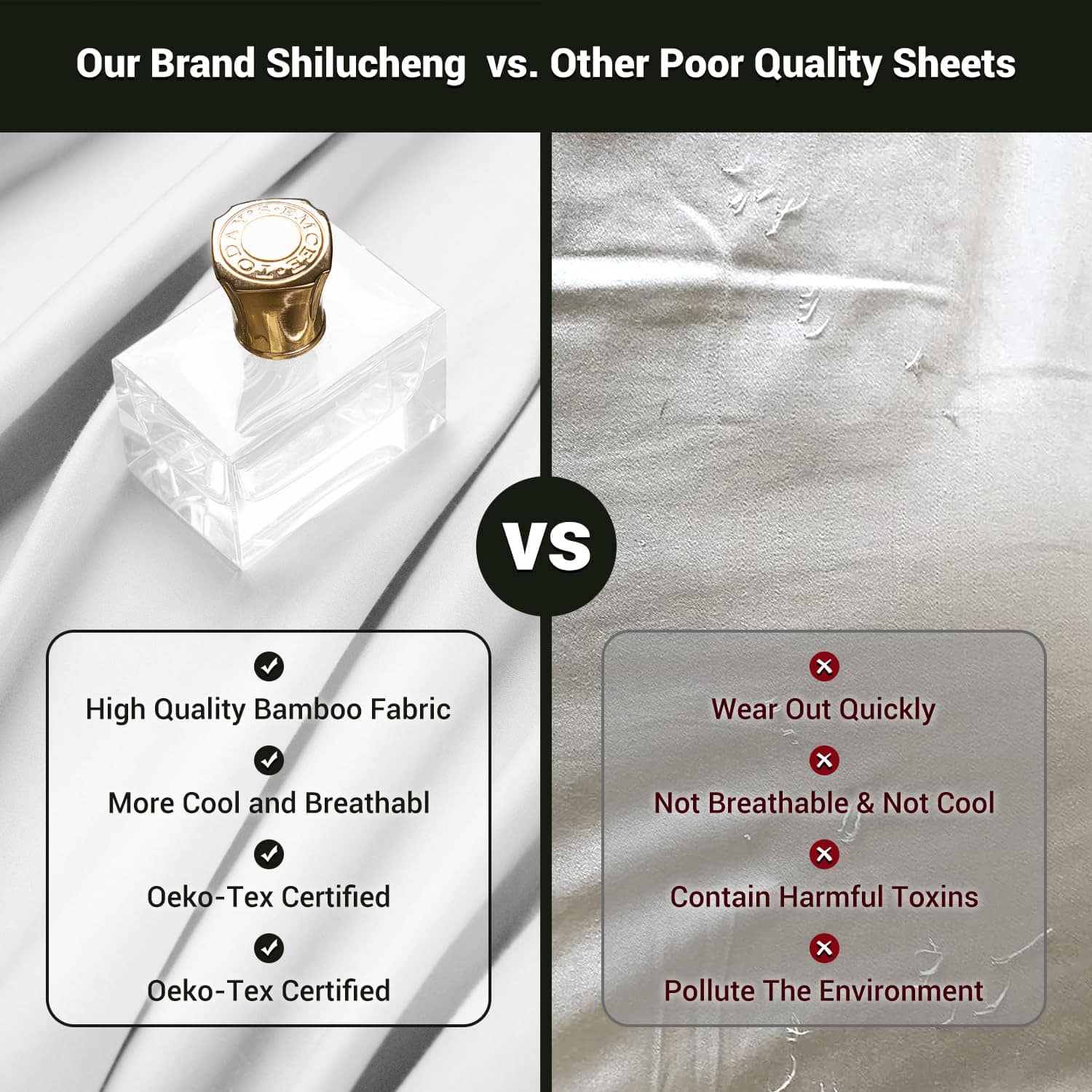 Las sábanas Shilucheng de 4 piezas para Full son la mejor opción para aquellos buscando un sueño reparador y fresco. Con una combinación de un 60% de rayón derivado del bambú y un 40% de fibra de poliéster, estas sábanas son más fuertes que el algodón, suaves como la seda y frescas al tacto. Con un singular tejido de sarga, estas sábanas te harán sentir como si estuvieras durmiendo en una nube. Perfectas para aquellos que tienden a ser calurosos durante la noche, estas sábanas ajustan la temperatura y absorben la humedad para mantenerte fresco y seco durante toda la noche. El juego incluye 1 sábana plana de 81″ x 96″, 1 sábana ajustable de 54″x75″x16″ y 4 fundas de almohada de 20″ x 30″. Este juego de sábanas no solo ofrece lujo asequible, sino también durabilidad. Hechas de alta calidad de Mezcla de Rayón Derivado de Bambú, estas sábanas ofrecen una suave superficie sin arrugas y excepcional suavidad. Además, son fáciles de lavar y cuidar, ya que son duraderas y se pueden lavar a máquina. Duerme como un rey con las sábanas DECOLURE Shilucheng.