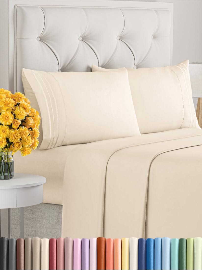 Juego de sábanas de 4 piezas en tamaño completo en color crema rosa, elaboradas con la más alta calidad de microfibra cepillada, que garantiza suavidad y frescura excepcionales. Este juego incluye 2 fundas de almohada, sábana encimera y sábana bajera con bolsillos profundos que se ajustan a colchones de hasta aproximadamente 16 pulgadas de profundidad. Las sábanas son transpirables y frescas, ideales para cualquier habitación de la casa, ya sea el dormitorio, la habitación de invitados, la casa rodante o la casa de vacaciones. Además, son una excelente idea de regalo para todas las ocasiones. Sentirás la diferencia al acostarte en estas suaves sábanas, que son más suaves que las de algodón egipcio y algodón orgánico. Disfruta de la comodidad y la suavidad de las sábanas CGK Unlimited, que ofrecen una relación calidad-precio inigualable en el mercado.