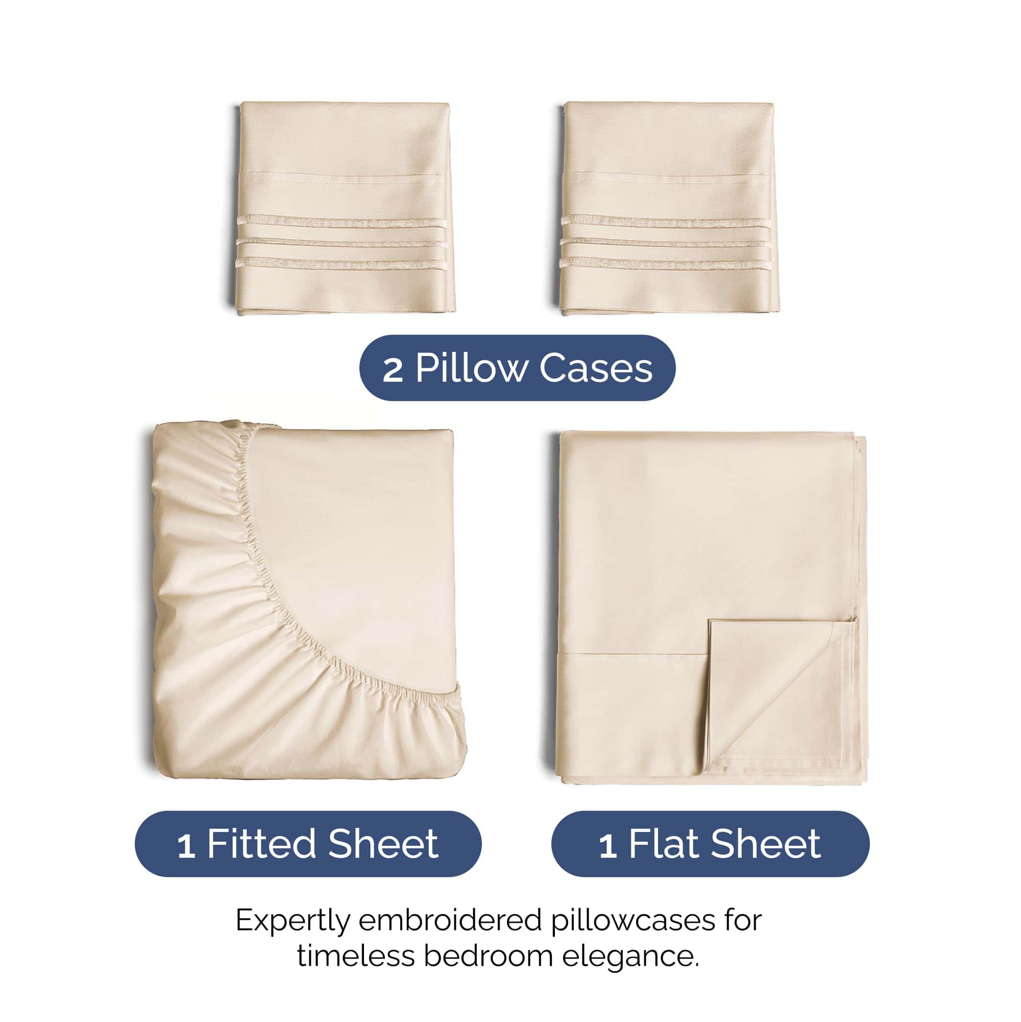 Juego de Sábanas de 4 Piezas Tamaño -Crema Rosa