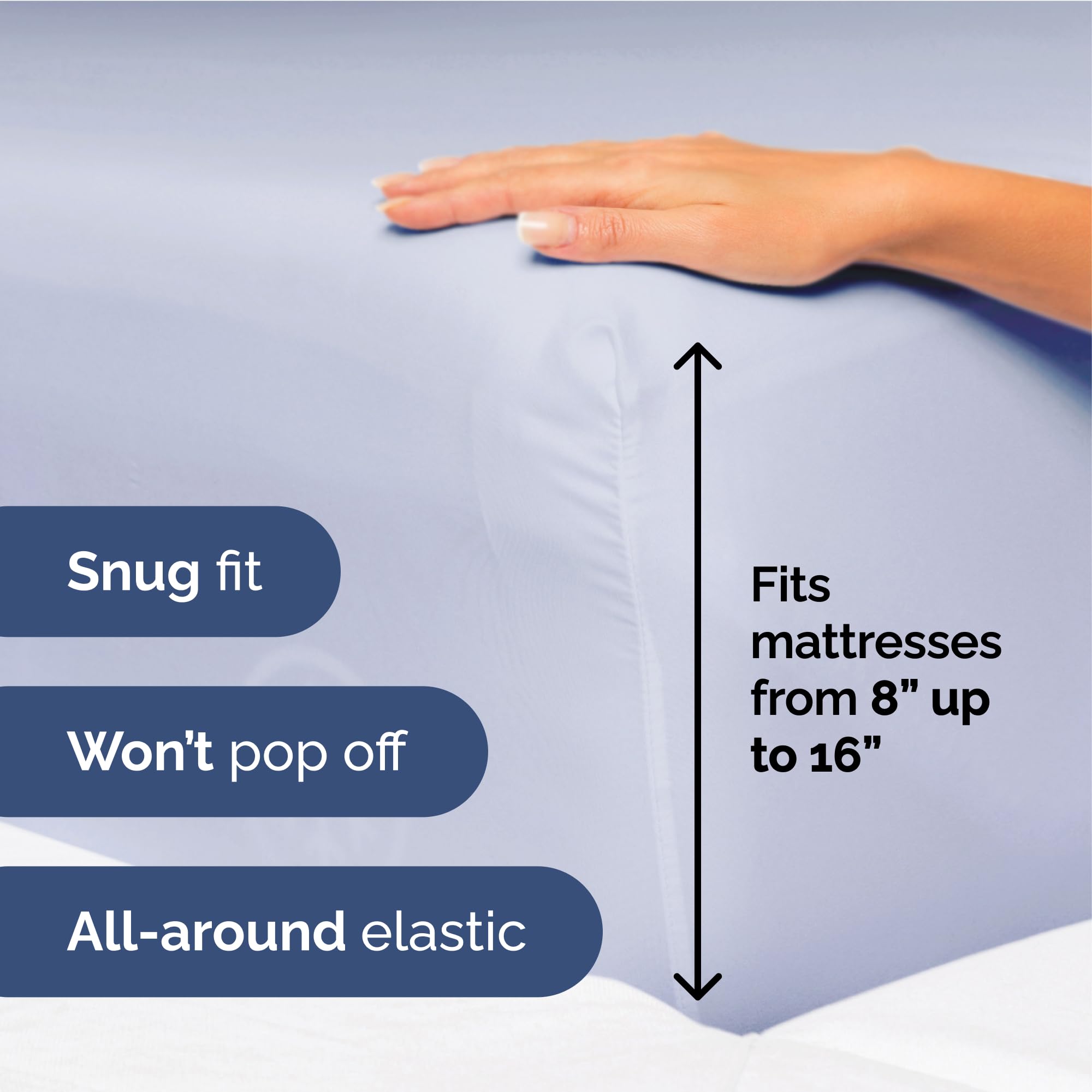 2. BOLSILLOS PROFUNDOS / AJUSTE FÁCIL: Se ajustan a colchones de hasta aproximadamente 16 pulgadas de profundidad. Si su colchón es más pequeño que 16 pulgadas, se ajustará perfectamente.
