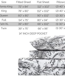 Este juego de sábanas Winter Brush Collection de Southshore Fine Living, Inc. para cama tamaño Full incluye una sábana bajera ajustable completamente elástica con bolsillo profundo, una sábana plana Full y dos fundas de almohada estándar. Las sábanas son suaves al tacto, transpirables, ligeras, resistentes a las arrugas, al encogimiento y a la decoloración. Son fáciles de cuidar y mantendrán su frescura lavado tras lavado. Garantizamos su calidad y ofrecemos una experiencia sin riesgos de 30 días.