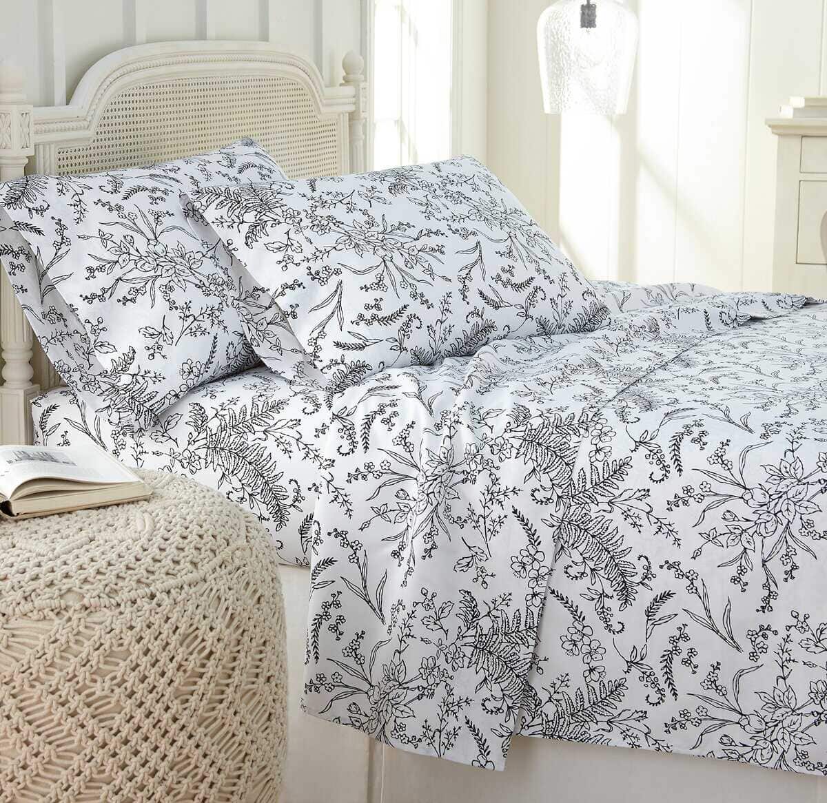 Juego de sábanas de 4 piezas Winter Brush -Blanco con flores