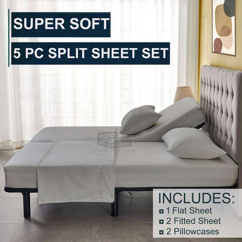 Juego de Sábanas de 5 Piezas Split -Gris Claro Sólido