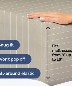 2. BOLSILLOS PROFUNDOS/FÁCIL AJUSTE: Se ajustan a colchones de hasta alrededor de 16 pulgadas de profundidad. Si su colchón es más pequeño que 16 pulgadas, encajarán perfectamente.