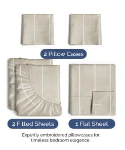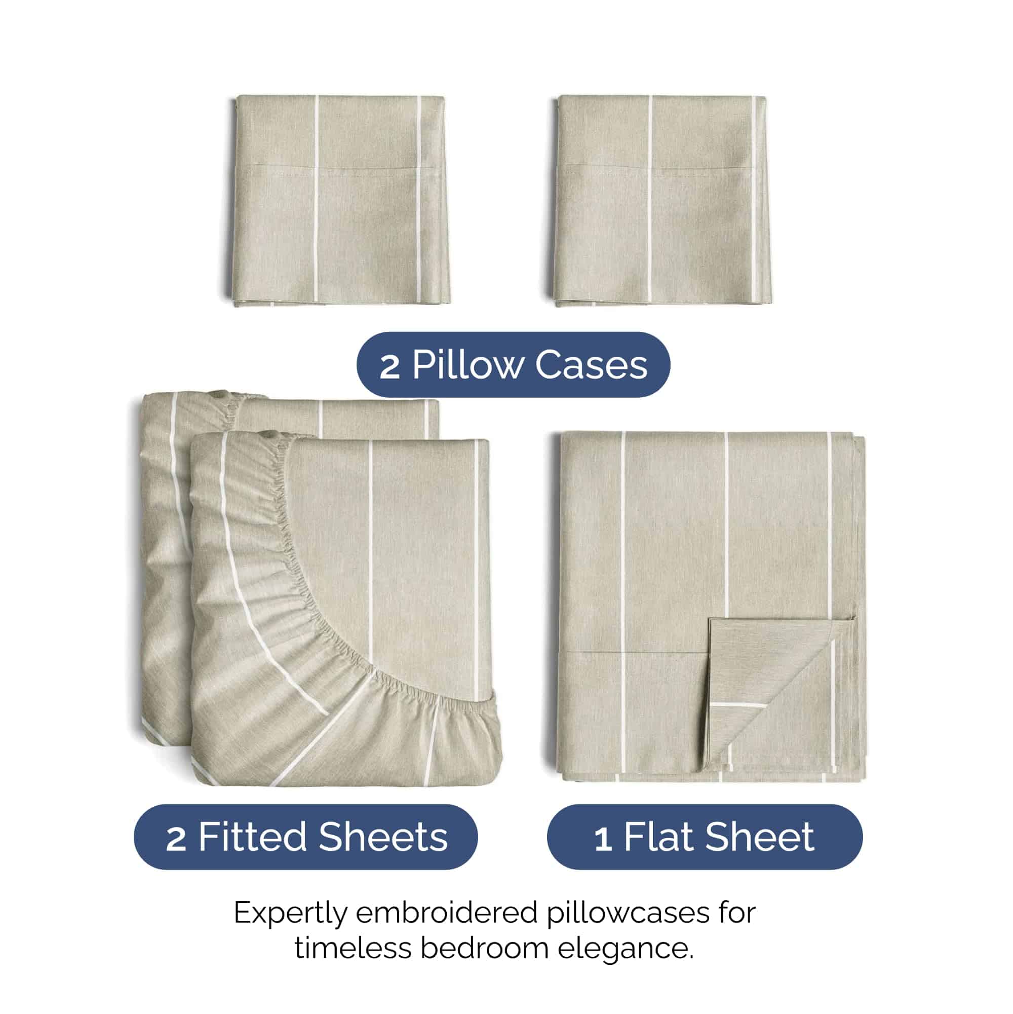Juego de sábanas de 5 piezas tamaño Split -Beige Rayas
