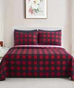 1. Diseño Estampados modernos de patrones geométricos con decoración a cuadros negros y rojos. Diseño impreso a juego en las 2 fundas de almohada. Nuestro 120 GSM de poliéster y rayón derivado de bambú es suave y duradero y cuenta con un tejido transpirable.