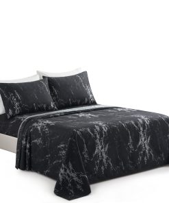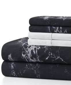 Este juego de sábanas de 6 piezas es perfecto para agregar un toque de elegancia y comodidad a tu dormitorio. Con un moderno patrón de mármol negro y gris, este set de sábanas Queen size está diseñado para brindar un ambiente acogedor y sofisticado. Hecho de un suave poliéster doble cepillado y derivado de bambú, las sábanas son duraderas, suaves al tacto y transpirables. El set incluye una sábana plana, una sábana ajustable con bolsillos profundos, 2 fundas de almohada impresas y 2 fundas de almohada lisas adicionales. Además, son fáciles de cuidar, ya que son lavables a máquina y resisten las arrugas. No esperes más para darle a tu dormitorio el toque de estilo que se merece con este juego de sábanas de alta calidad.