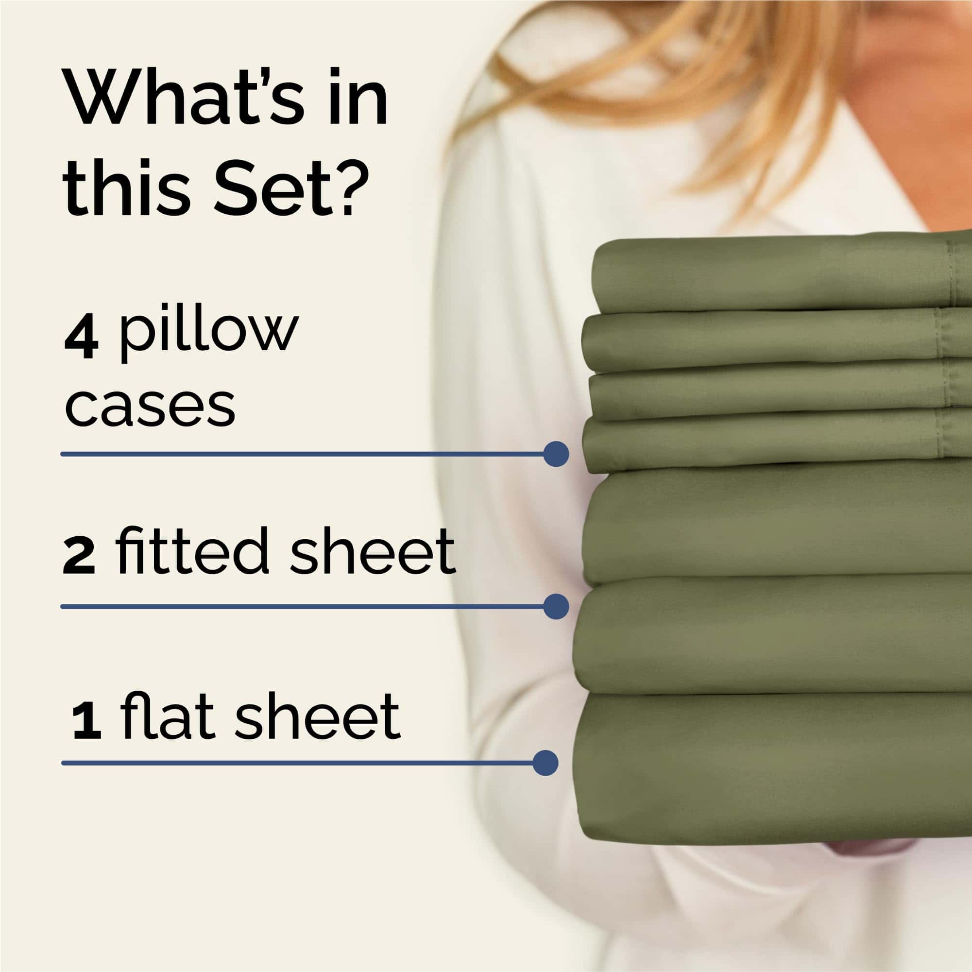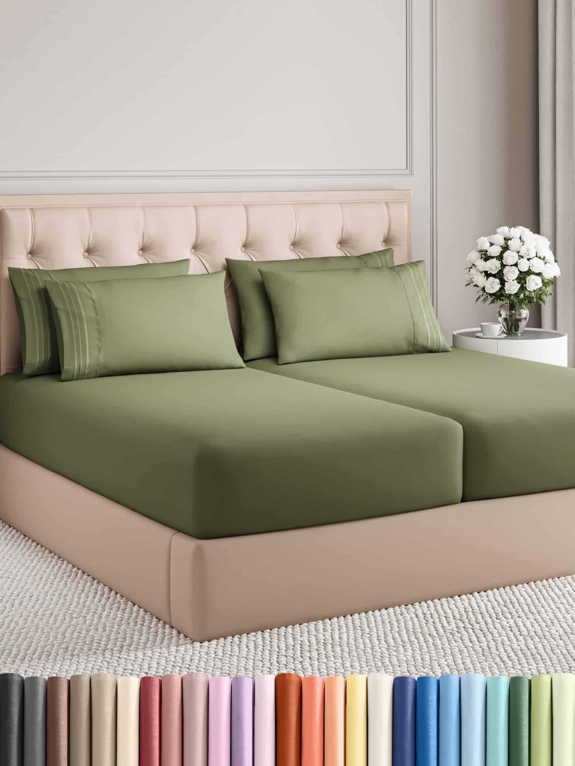 Juego de sábanas de 7 piezas Split King – Sábanas -Verde Sal