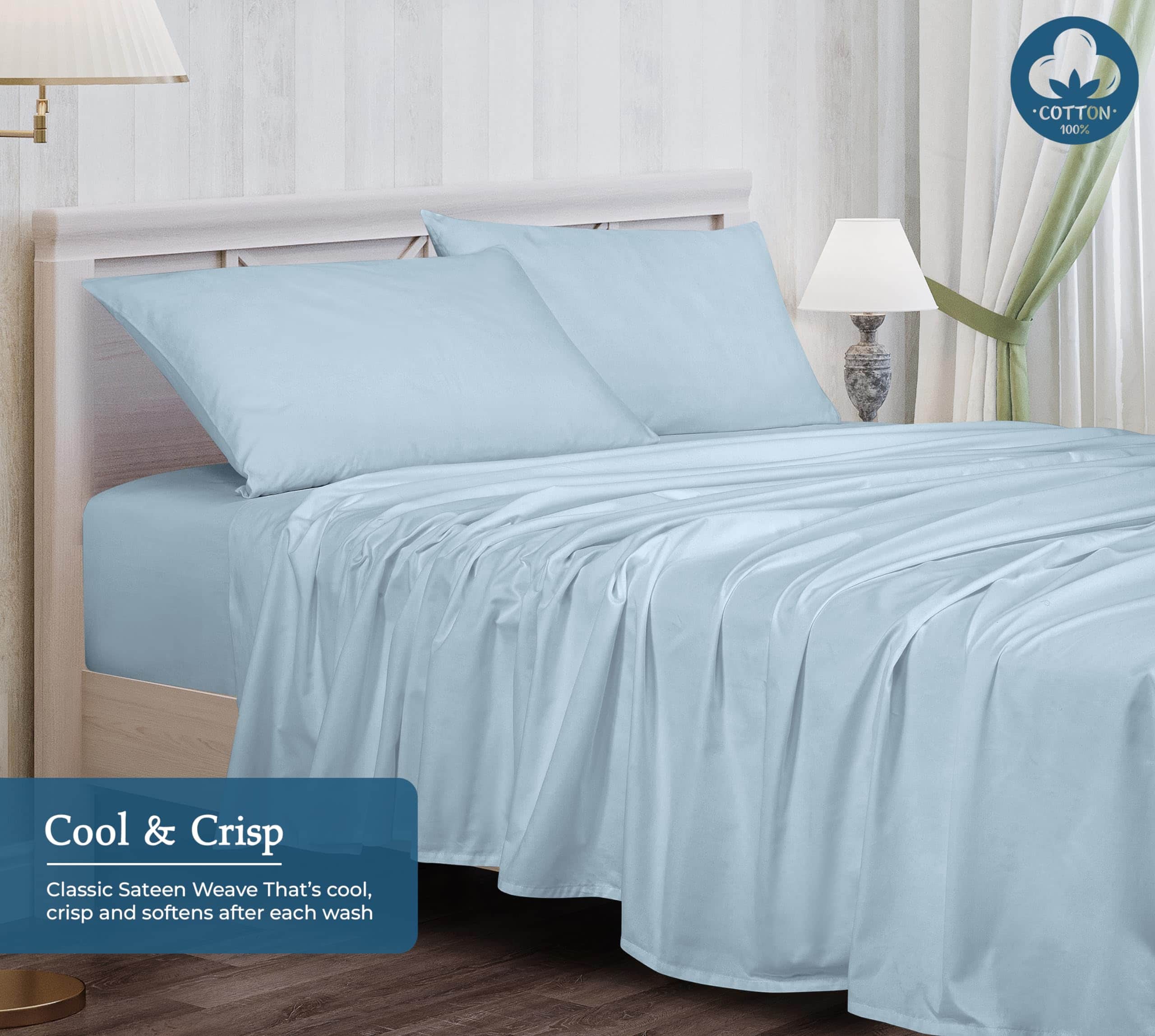 5. INSTRUCCIONES DE CUIDADO: Las sábanas de algodón de Royale Linens están diseñadas para resistir lavados repetidos. Lavar a máquina en frío, solo usar lejía sin cloro, secar en secadora o planchar a temperatura normal. Lavar antes del primer uso para desbloquear la suavidad.