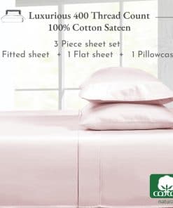 Wake up refreshed in all seasons with our certified 400-thread count sateen 100 percent cotton sheets which are soft and cool, providing you with comfortable sleep throughout the year. As featured in a 2023 Wall Street Journal article, our luxury sheets were referred to as «as soft as sheets 3x the price» – a great value indeed. Our 3-piece twin XL sheet set includes 1 top sheet, 1 bottom fitted sheet with all-around elastic that fits mattresses 8 to 15 inches deep and 1 standard-size pillowcase. The high-quality elastic of these extra long twin sheets won’t loosen or bunch up, and head/foot side indicators make bed-making a breeze. You can machine wash and dry our soft cotton sheets at a normal setting, and they will come out looking great for years. Our twin extra long sheets are durable, hardly wrinkle, and won’t pill, fade, or shrink. Cotton is naturally breathable and gentle on your skin. According to the National Sleep Foundation, synthetic fabrics like microfiber can disrupt sleep and cause health issues, while 100% cotton sheets promote natural temperature regulation and better daytime functioning. Our bedding sheets and pillowcases are certified Oekotex Standard 100, tested for harmful substances to protect your health. In 2022 & 2023, we donated over 22,000 pieces of bedding to local charities in the USA. We do not use plastic in our packaging, and our sheets are produced in our family-owned and operated factory in India. Each piece is inspected for quality, and we promise to replace any defective products at no cost to you. Buy with confidence with our 30-day return policy, even if you’ve washed or used our product.