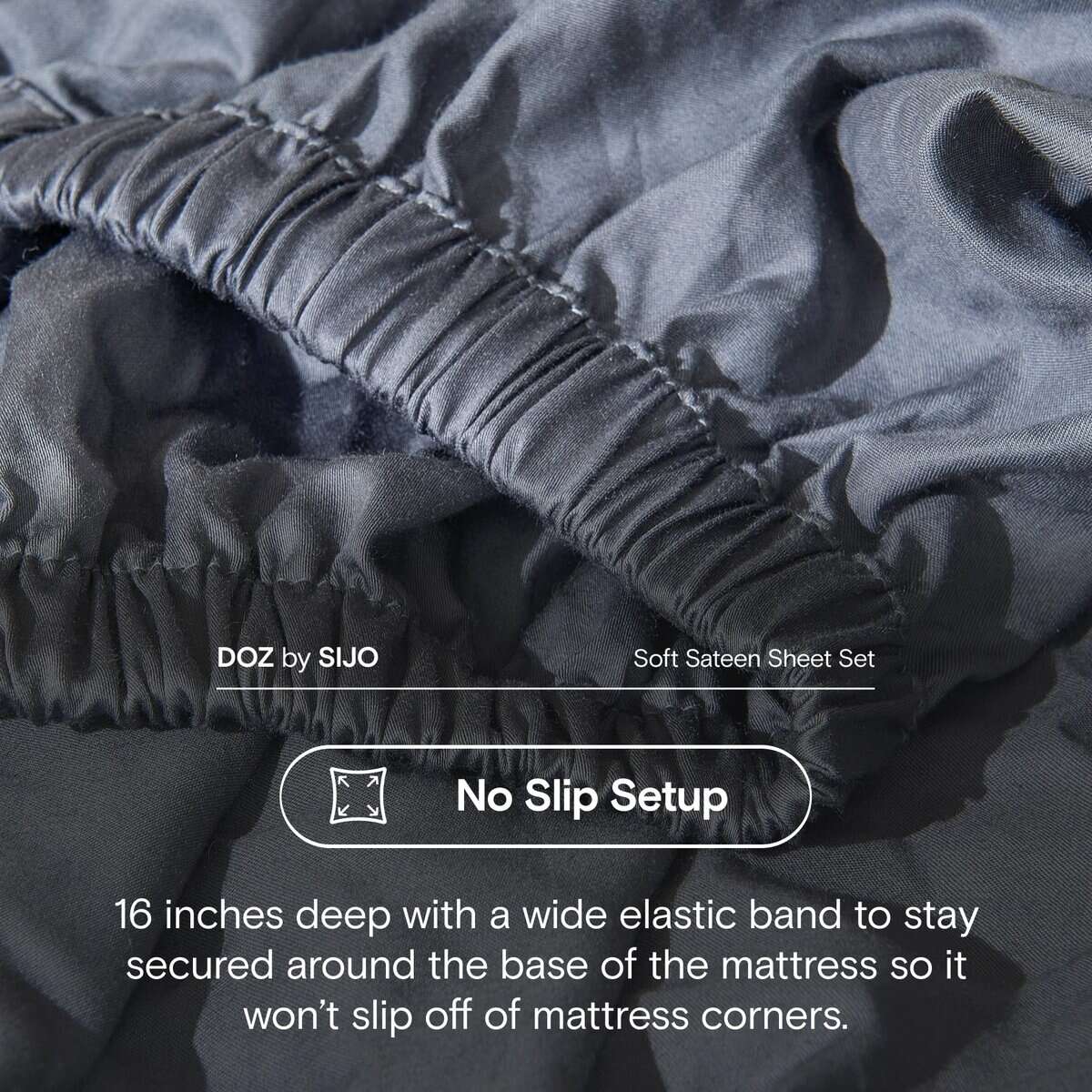 DOZ by SIJO es un conjunto de sábanas de algodón. Las sábanas de satén de algodón DOZ by SIJO están certificadas Oeko-Tex 100 Clase 1 con los requisitos más estrictos para artículos de bebé. Las sábanas de algodón de DOZ están libres de sustancias tóxicas, pesticidas y OMGs. El tejido de satén brinda una sensación lujosamente suave, manteniéndote fresco incluso en las noches más cálidas. El juego incluye 2 fundas de almohada, 1 sábana ajustada y 1 sábana plana con un bolsillo de 16 pulgadas.