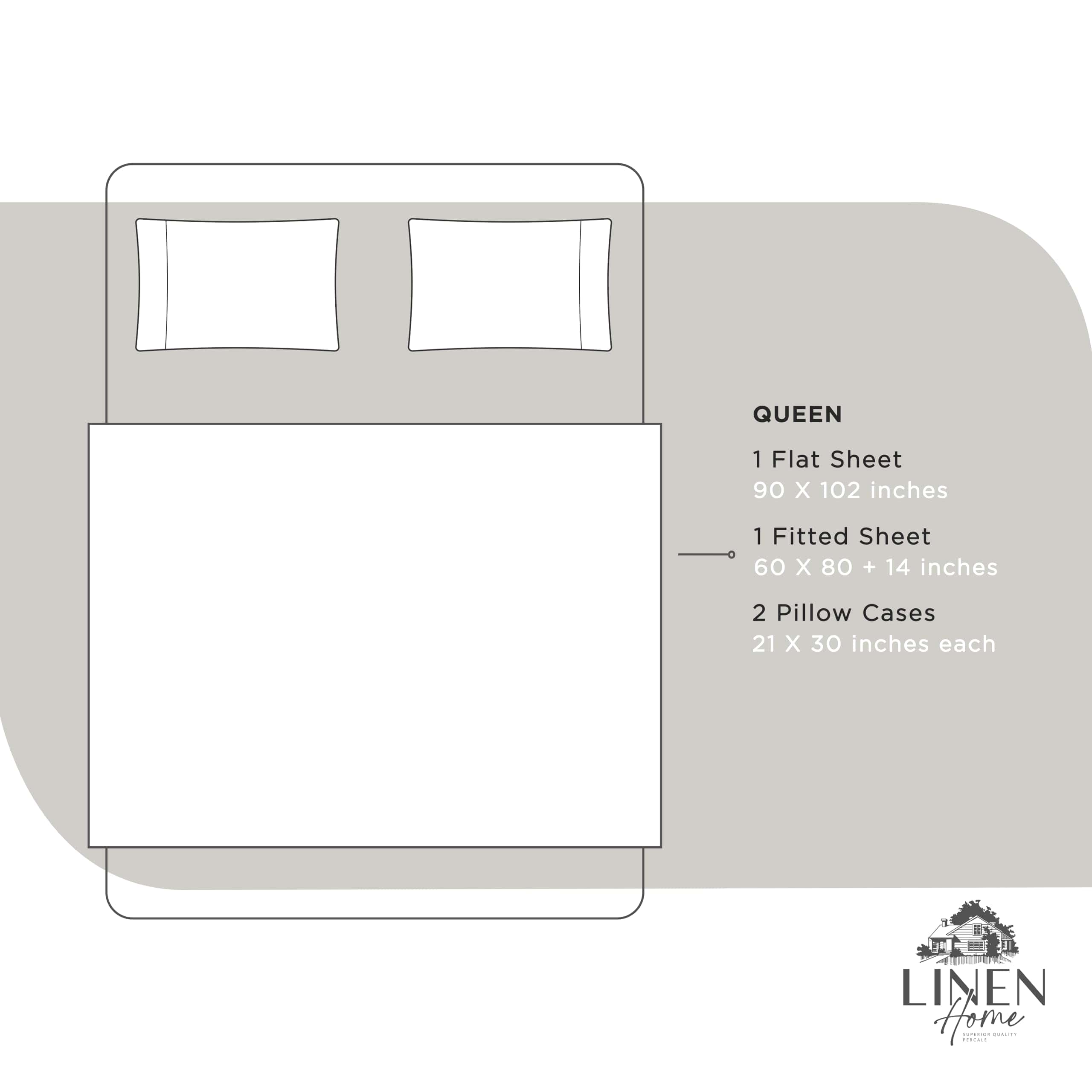 Juego de Sábanas de Algodón 100% Percale Linen Home Queen