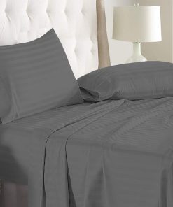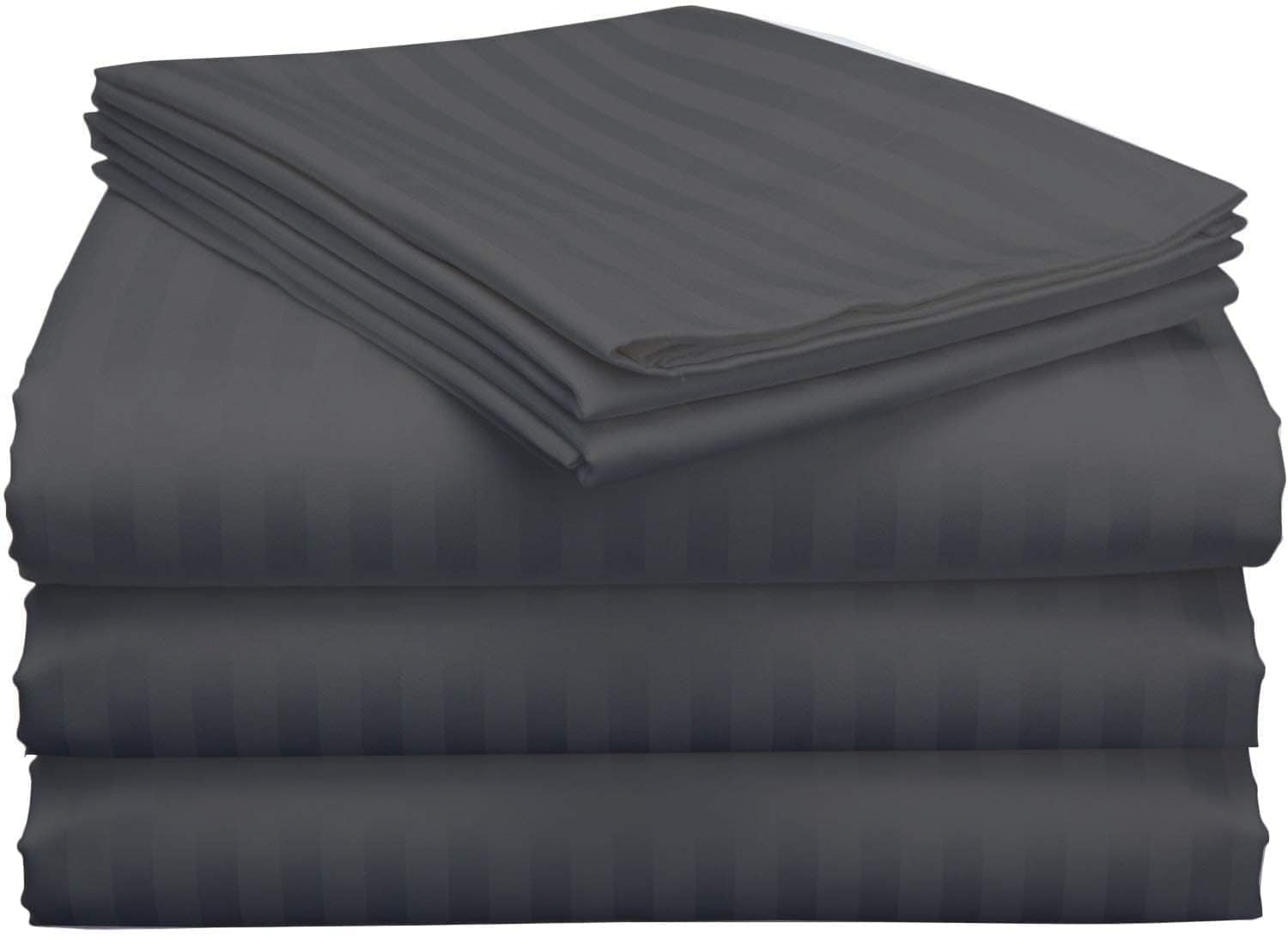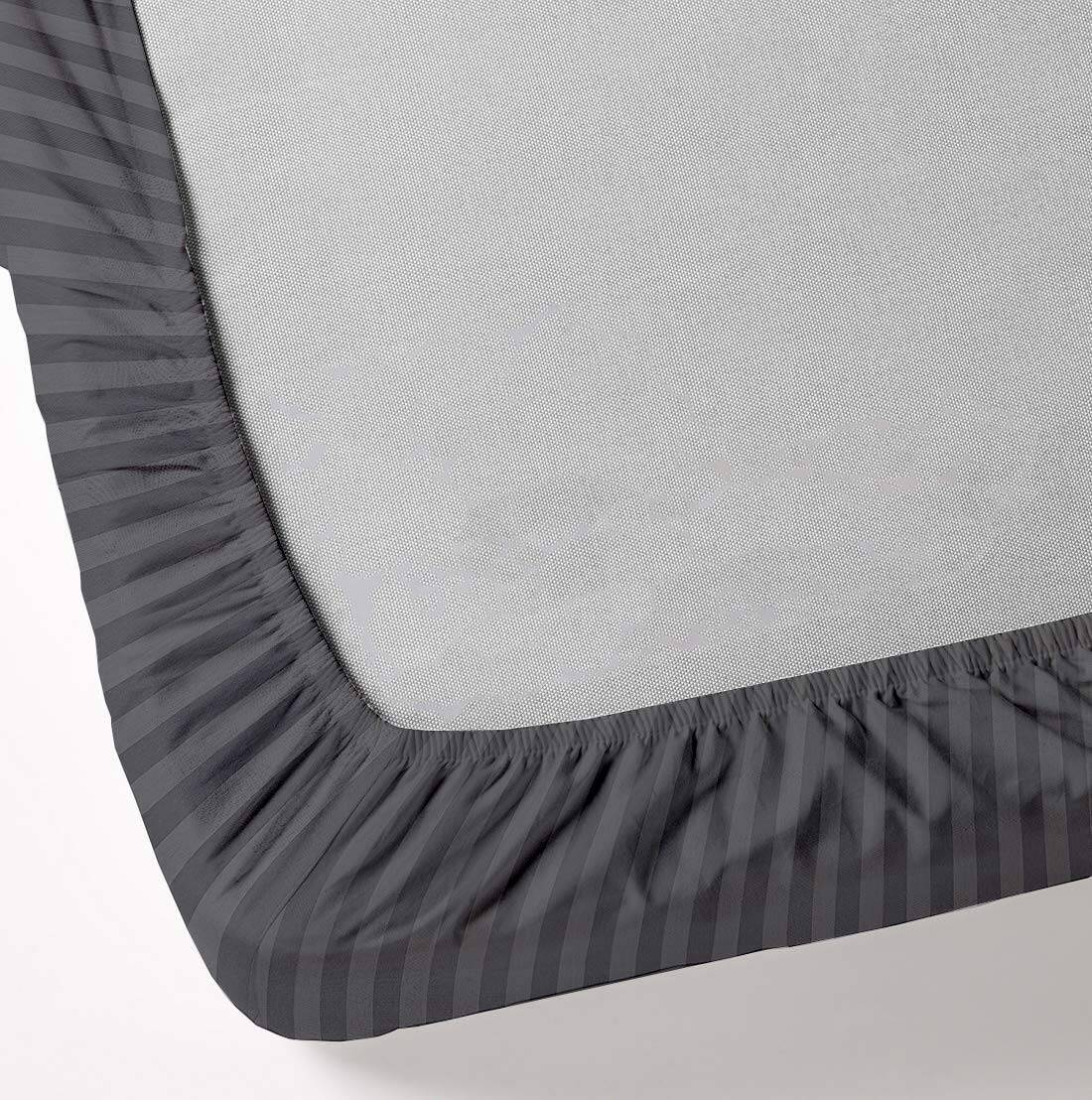 Juego de sábanas de algodón 5 piezas split set 400 hilos 100% extra largo de lujo e hipoalergénico colección de ropa de cama de hotel y hogar bolsillo profundo 10-18 pulgadas (Split King, Rayas Gris Oscuro) – Disfrute de la suavidad y confort de las sábanas de algodón puro que son suaves en su piel con este juego de sábanas 5 piezas. Diseñado específicamente para camas ajustables split king, este juego proporciona confort individualizado para usted y su pareja. Las sábanas cuentan con un lujoso recuento de hilos de 400, asegurando durabilidad y una sensación suave y sedosa. Además, son transpirables y frescas, proporcionando una regulación natural de la temperatura corporal para un sueño confortable. El diseño de bolsillo profundo garantiza un ajuste seguro en colchones profundos y bases de cama ajustables. Estas sábanas son fáciles de mantener con características de lavado a máquina y secado en secadora, simplificando su rutina diaria. Con un estilo atemporal y una variedad de opciones de color, estas sábanas complementarán cualquier decoración de dormitorio. Fabricadas con precisión y materiales de alta calidad, este juego de sábanas ofrece confort y estilo duraderos. Cada paquete incluye una sábana plana, sábana ajustable y fundas de almohada, proporcionando una solución completa de ropa de cama para su cama ajustable.