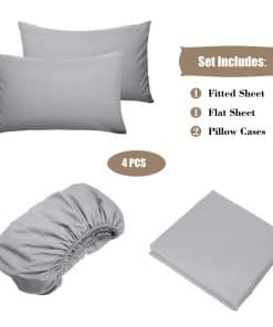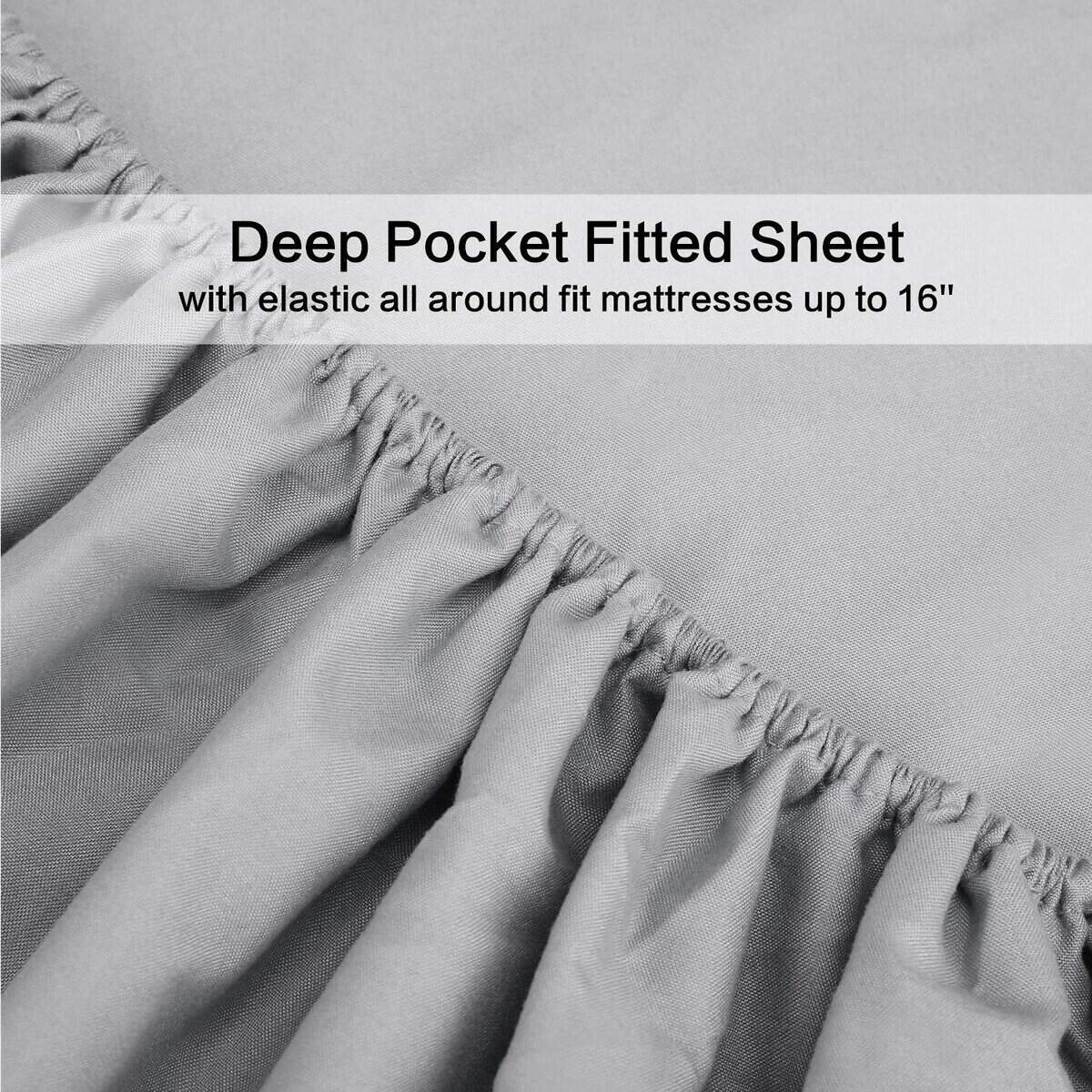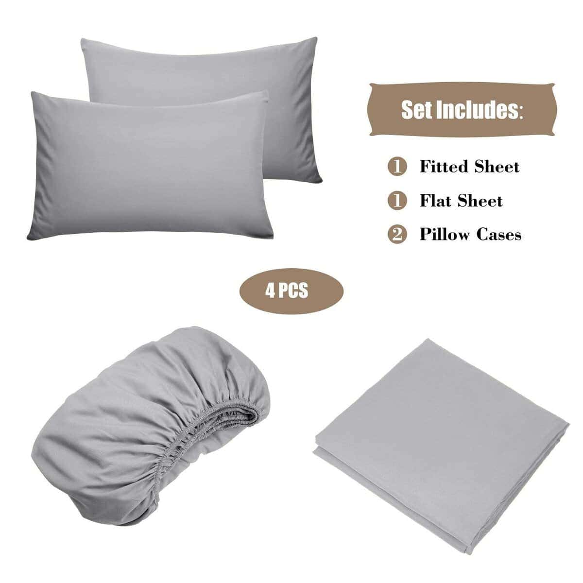 3. Juego de sábanas Queen hecho de 100% algodón; incluye una sábana plana de 100 por 104 pulgadas, una sábana ajustable de 60 por 80 por 16 pulgadas y dos fundas de almohada de 21 por 32 pulgadas.