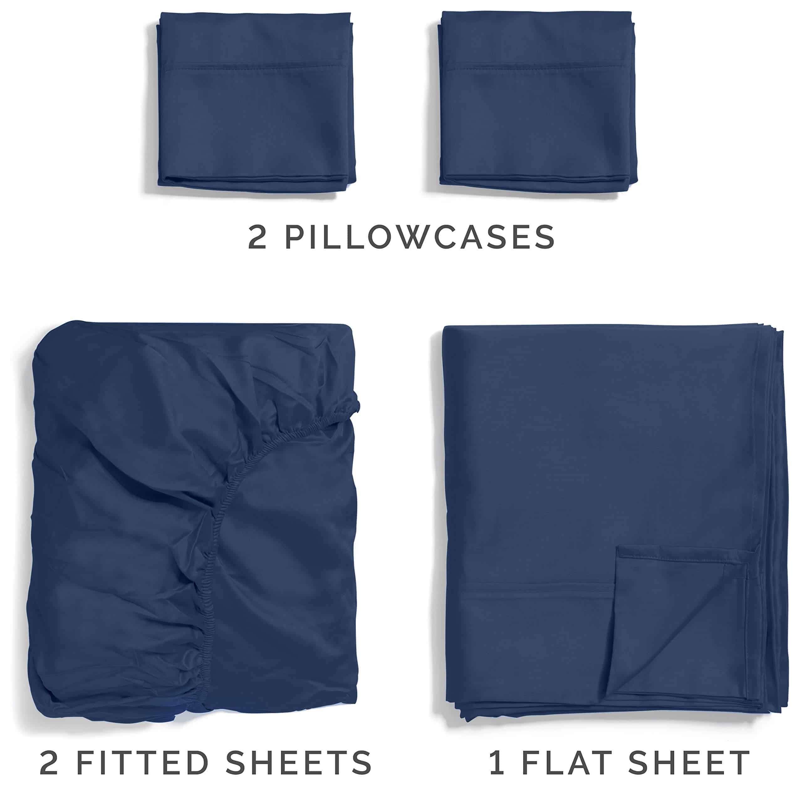 Juego de sábanas de algodón de 400 hilos – -Azul marino