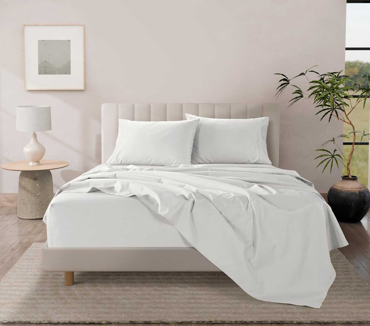 Este juego de sábanas blanco de algodón egipcio de 1000 hilos tamaño king es la elección perfecta para aquellos que buscan sumergirse en el lujo y la comodidad supremos. Con una textura suave y sedosa, estas sábanas ofrecen una experiencia de sueño agradable y reparadora que te recordará a la estancia en un hotel de cinco estrellas. El set incluye una sábana ajustable tamaño king con bolsillos profundos que se adapta perfectamente a tu colchón tamaño king, garantizando un ajuste seguro durante toda la noche. Además, la sábana plana y las fundas de almohada de algodón egipcio tamaño king en blanco brindan un toque de elegancia y sofisticación a tu dormitorio.