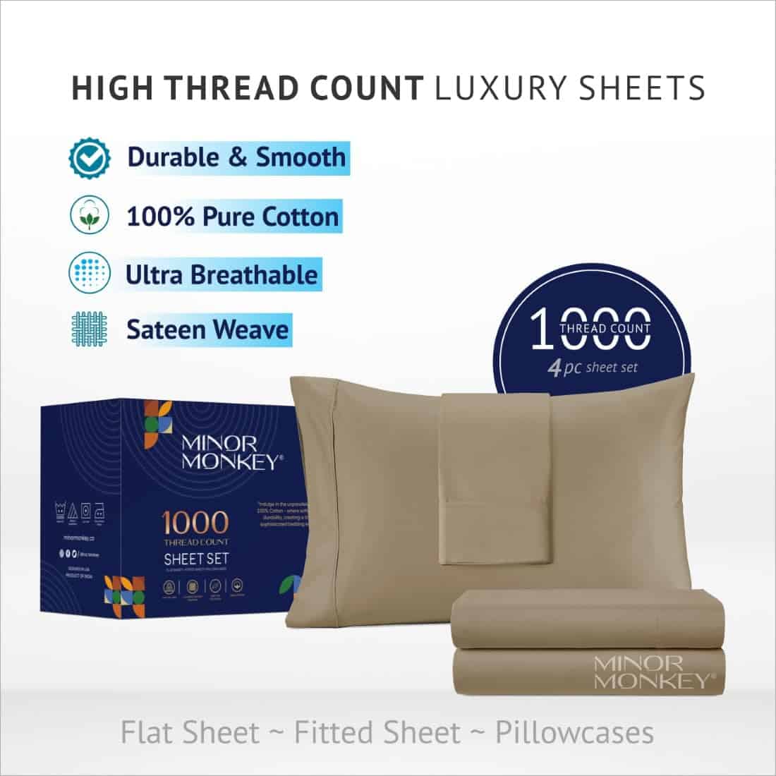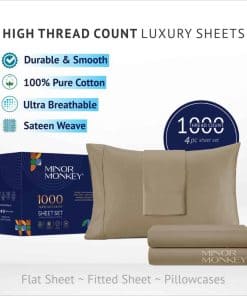 1. 100% algodón egipcio de alta calidad – Experimenta el epítome del lujo con nuestras sábanas, meticulosamente tejidas con puro algodón egipcio y un exquisito conteo de 1000 hilos. El material de alta calidad no solo emana opulencia, sino que también tiene un rendimiento duradero y duradero. El tejido de satén agrega un toque de indulgencia, lo que resulta en sábanas irresistiblemente sedosas suaves y un verdadero testimonio de la fina artesanía.