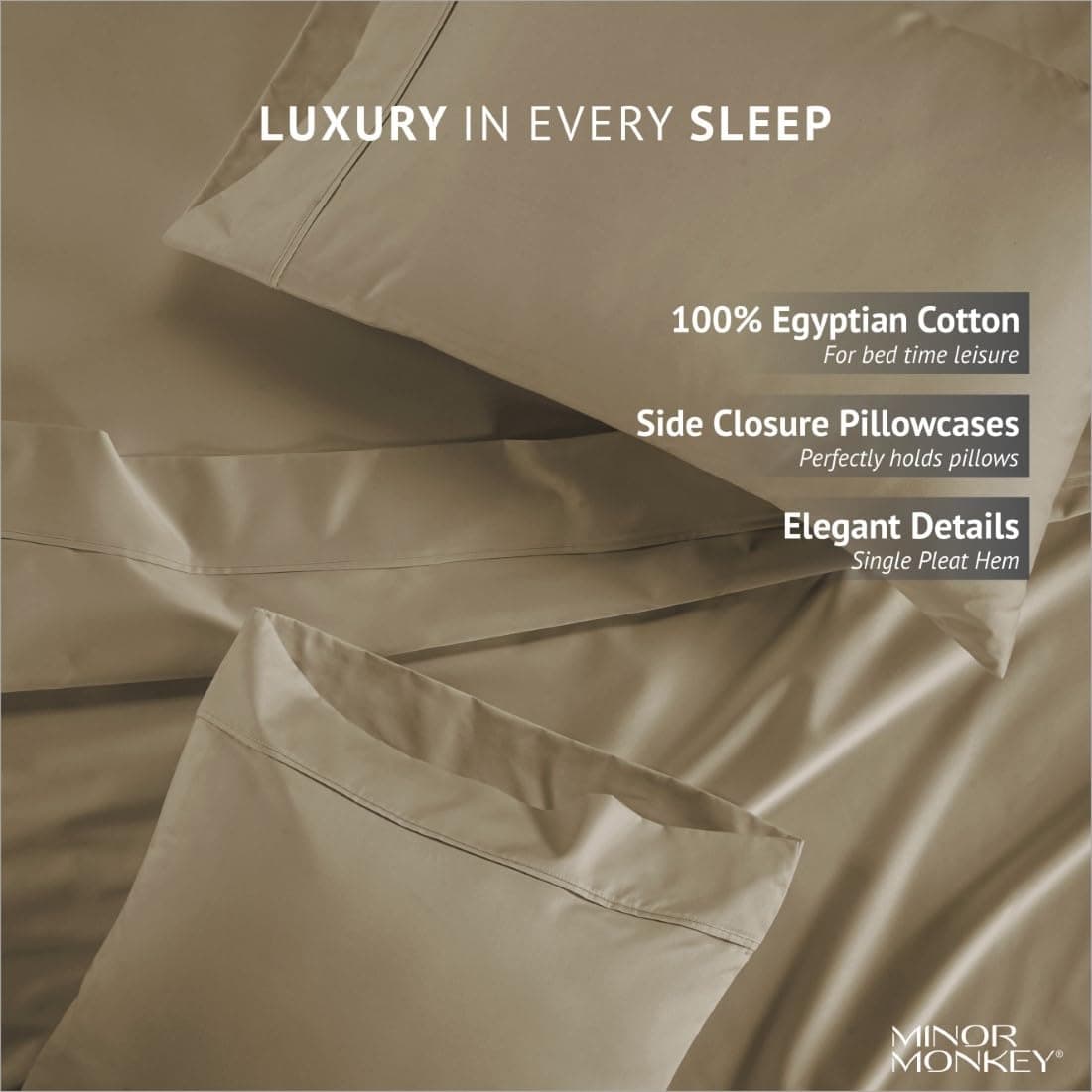 4. Sábanas de cama transpirables y frescas – Acepta la serenidad de un entorno de sueño fresco y transpirable con nuestras sábanas. La transpirabilidad natural del algodón egipcio garantiza un flujo de aire óptimo, contribuyendo a un sueño nocturno refrescante y cómodo. Con un enfoque tanto en la comodidad como en la estética, este algodón egipcio está disponible en una gama de colores clásicos y complementa sin esfuerzo cualquier decoración de dormitorio, agregando un toque de sofisticación a tu espacio para dormir.