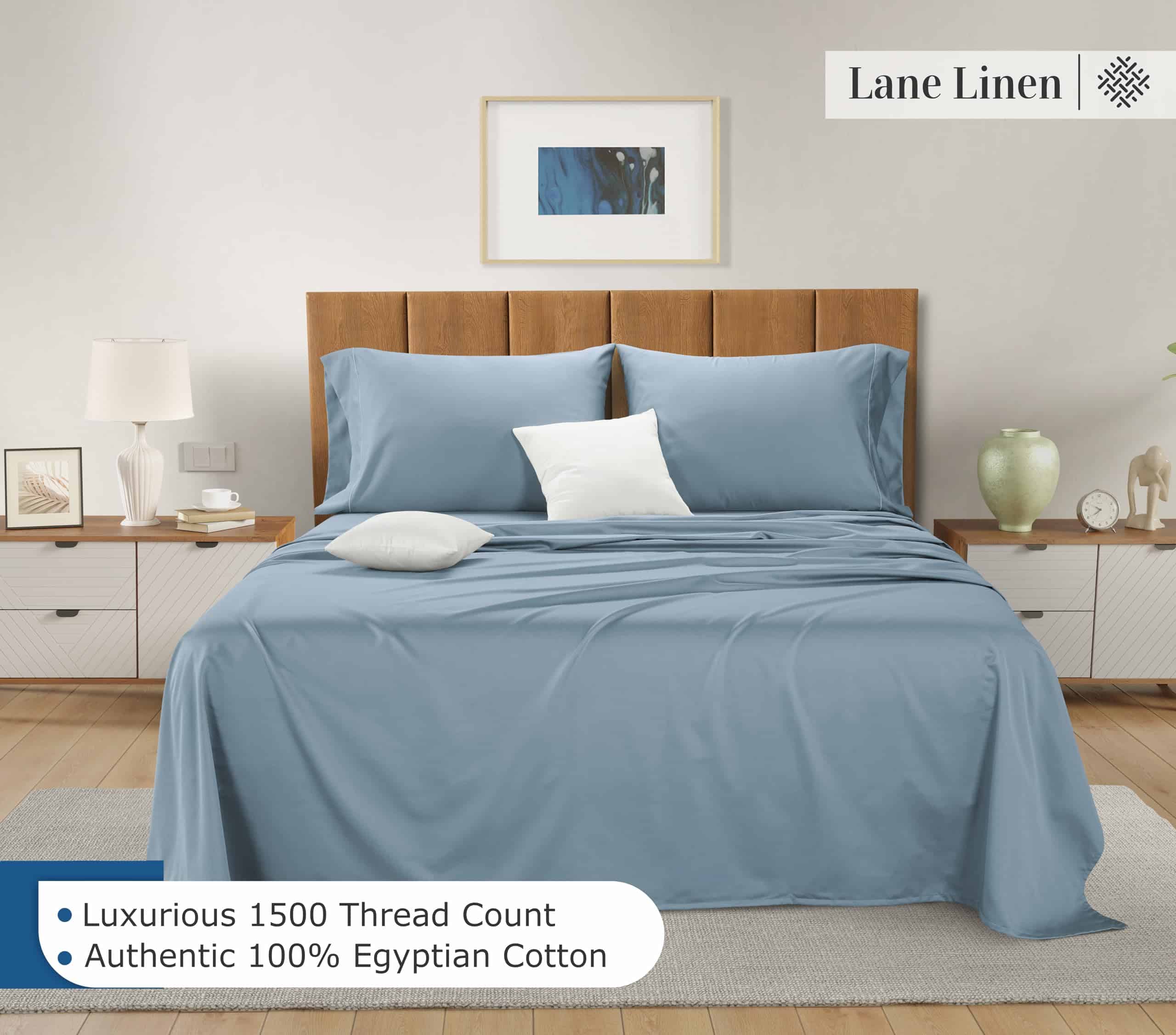 Introduzca el lujo incomparable del juego de sábanas Lane Linen de 1500 hilos 100% algodón egipcio tamaño California King en su dormitorio. Nuestra ropa de cama está confeccionada con tela de sábana de algodón egipcio puro para mejorar la durabilidad de la tela y garantizar una sensación suave como una nube, manteniendo al mismo tiempo su transpirabilidad. El juego de sábanas incluye una sábana ajustable tamaño Cal King con bolsillos profundos, una sábana plana tamaño Cal King y dos fundas de almohada King. El tejido satinado utilizado en nuestro juego de sábanas garantiza una excelente circulación de aire, termorregulación y transpirabilidad para una comodidad óptima durante toda la noche.