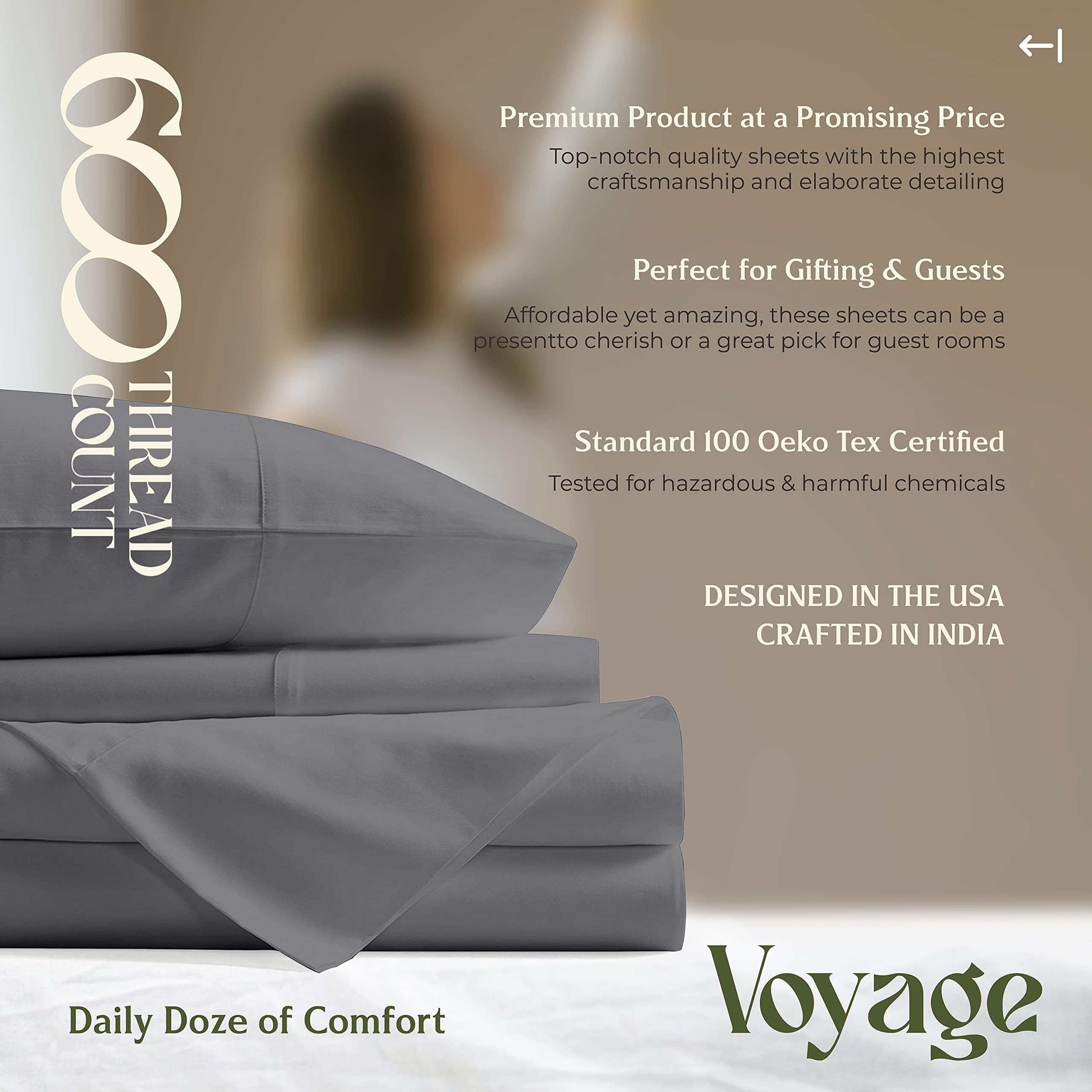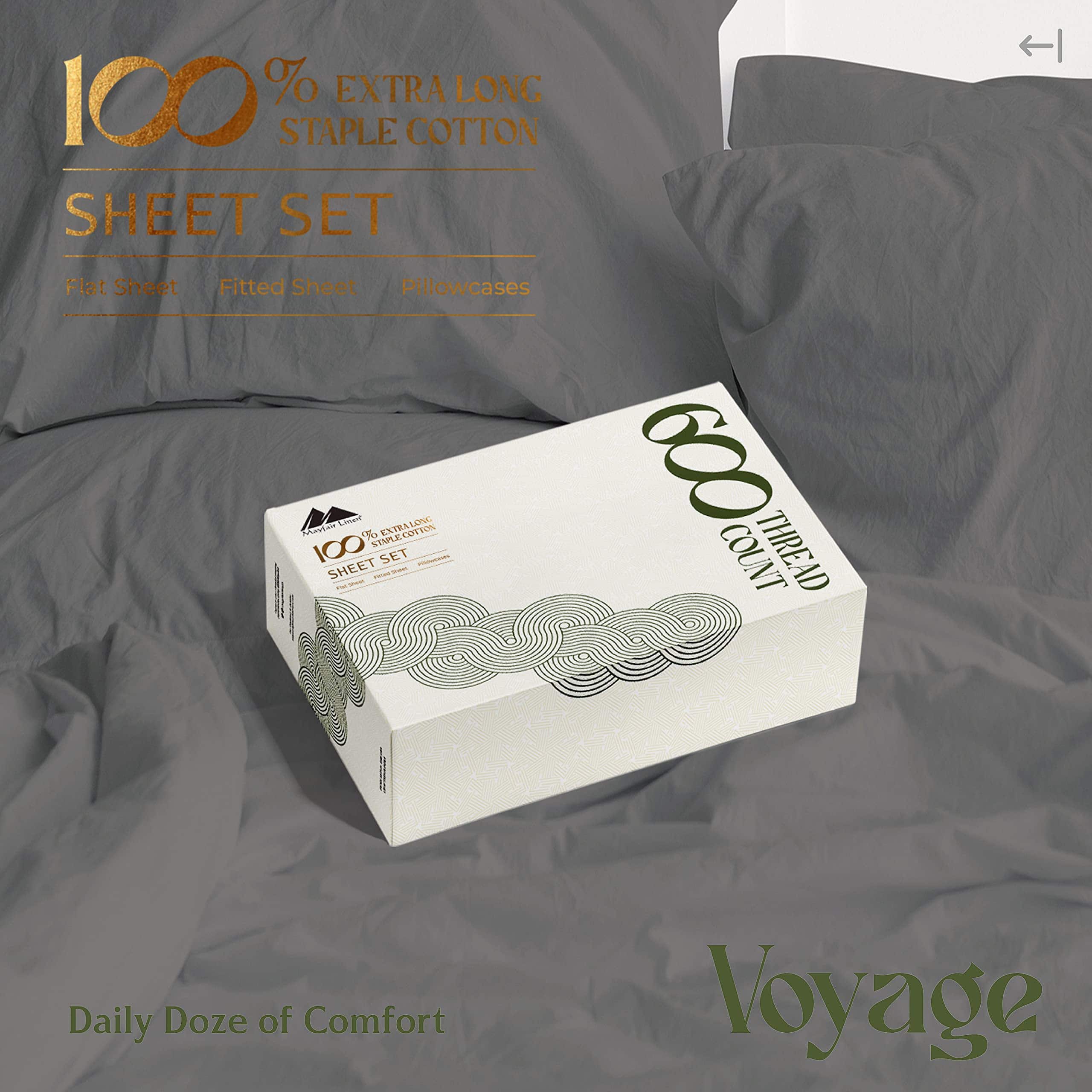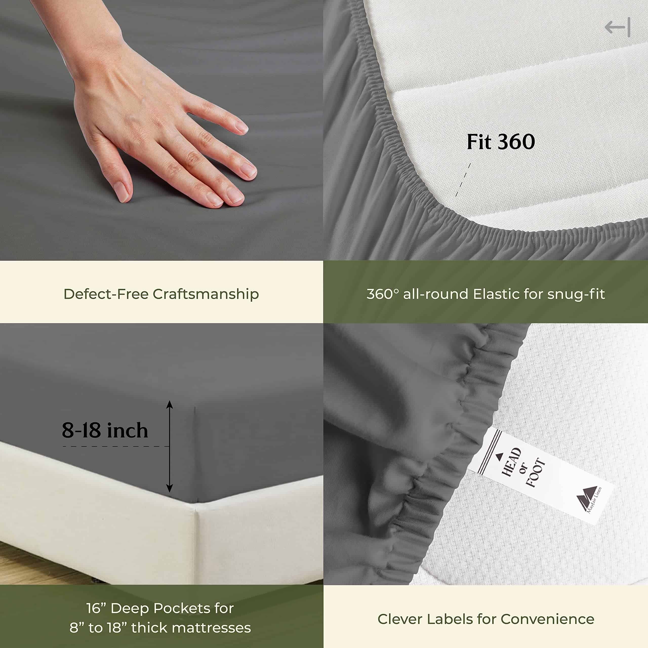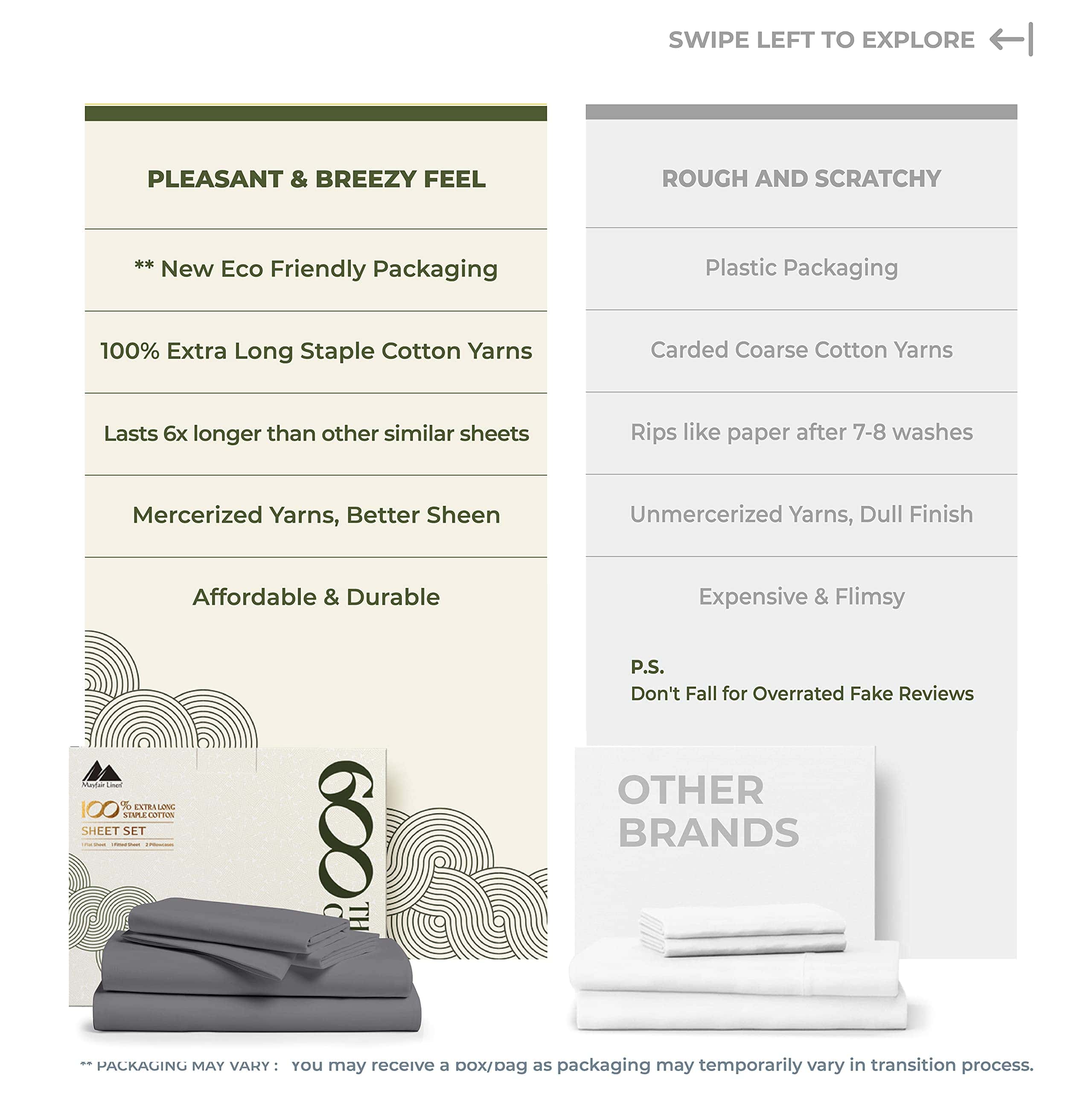 ¿Qué hay en la bolsa 1 Sábana Plana – (81 An x 96 L) | (205cm x 244cm) | 1 Sábana Inferior – 54 An x 75 L + 16 bolsillo profundo (137cm x 191cm + 41cm) | 2 Fundas de Almohada Tamaño Queen – 21 An x 32 L (53cm x 81cm) Lo que hace que nuestras sábanas sean las más suaves y lujosas del mercado actual : Cuanto más larga sea la fibra, más suave será la tela. Usamos fibras de algodón de fibra extra larga para hacer los juegos de sábanas más suaves y acogedores. 600 hilos se tejen en cada pulgada cuadrada de tela para mejorar la resistencia, resistencia al pilling y encogimiento, y la suavidad de la tela. Las sábanas se mercerizan luego para un toque más suave, un brillo aumentado y para hacer que los colores se vean más brillantes que las sábanas de algodón regulares. ¿Son comparables a la ropa de cama de hotel de cinco estrellas : Sí. La sábana satén proporciona un tacto suave y sedoso que se siente similar a la textura de las sábanas de cama de hotel de cinco estrellas. Estas sábanas de algodón son suaves, frescas y transpirables, como las que descansas en un hotel de cinco estrellas. ¿Son estas sábanas más duraderas que otras sábanas de algodón : Puedes decirlo. Las sábanas hechas de algodón de fibra extra larga tienden a deshilacharse menos, pilling menos, arrugarse menos para durar más que otras sábanas de algodón, sábanas de microfibra y sábanas de poliéster. ¿Cómo hacemos sábanas que se ajusten perfectamente a su cama : Cada sábana inferior tiene elástico de longitud completa y bolsillos profundos para adaptarse a todos los colchones de hasta 18 pulgadas de profundidad. Las etiquetas inteligentes indican el lado de longitud y anchura para que puedas hacer la cama fácilmente. Ves, hicimos todo el trabajo aquí para que no tengas que hacerlo.¿Por qué 1m+ clientes confían en nosotros: Cada paso de nuestro proceso es sostenible y ético para todos. Eso significa que nuestro juego de sábanas de algodón se cultiva naturalmente, sin sintéticos ni OMG. Estamos certificados por STANDARD 100 de OEKO-TEX, lo que significa que nuestra ropa de cama está libre de sustancias dañinas y tintes textiles. Por último, todo nuestro embalaje es libre de plástico, lo que nos convierte en una elección amigable y sostenible.