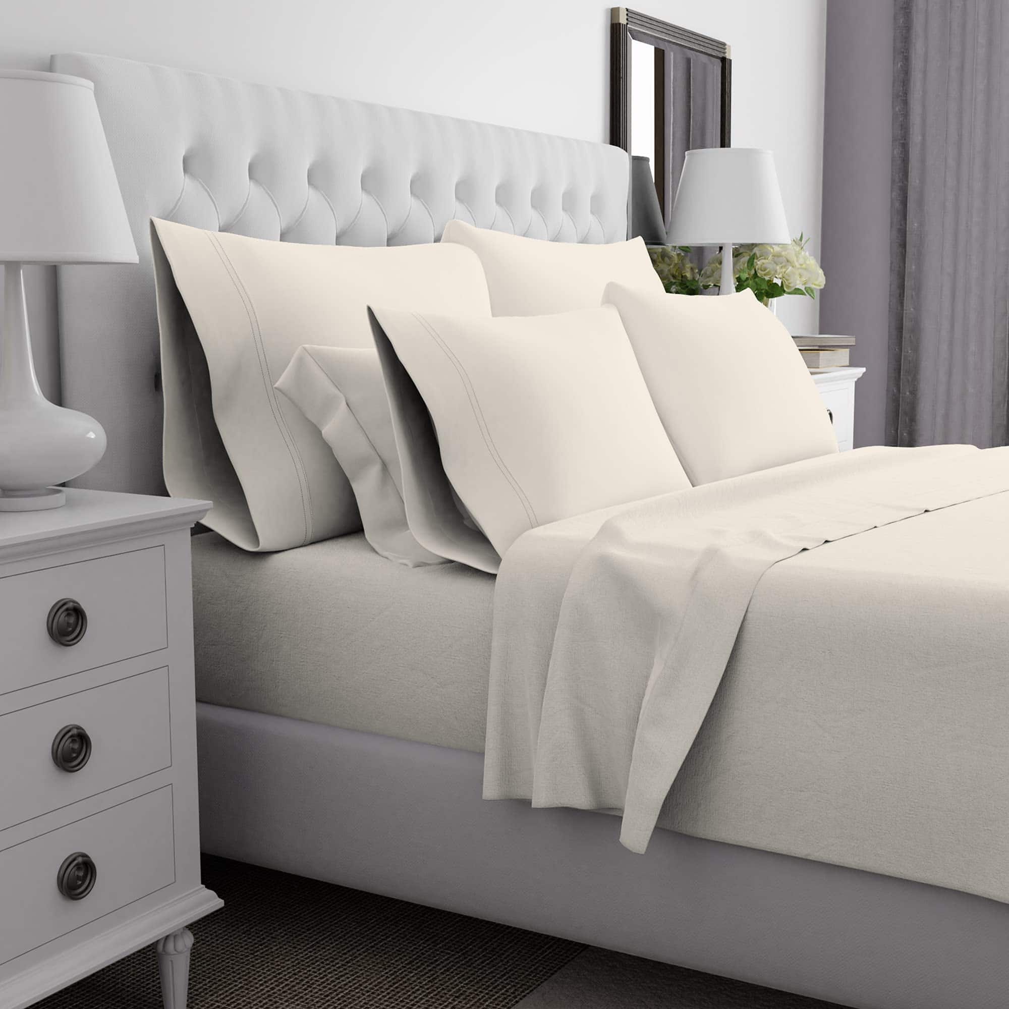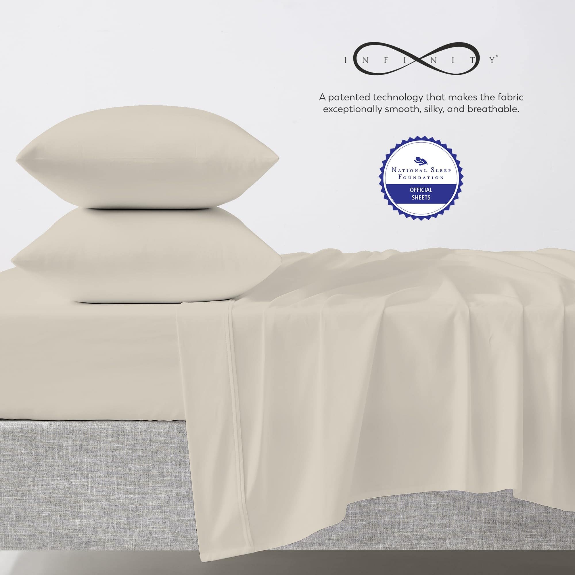 1. Lujo y comodidad se encuentran: Con un tejido patentado de satén Infinity, este lujoso juego de sábanas es excepcionalmente suave y transpirable para una noche de sueño inigualable. El patrón de un hilo por debajo y tres hilos por encima, junto con una construcción de 1000 hilos, seguramente te mantendrá acogedor, sin importar la temporada.