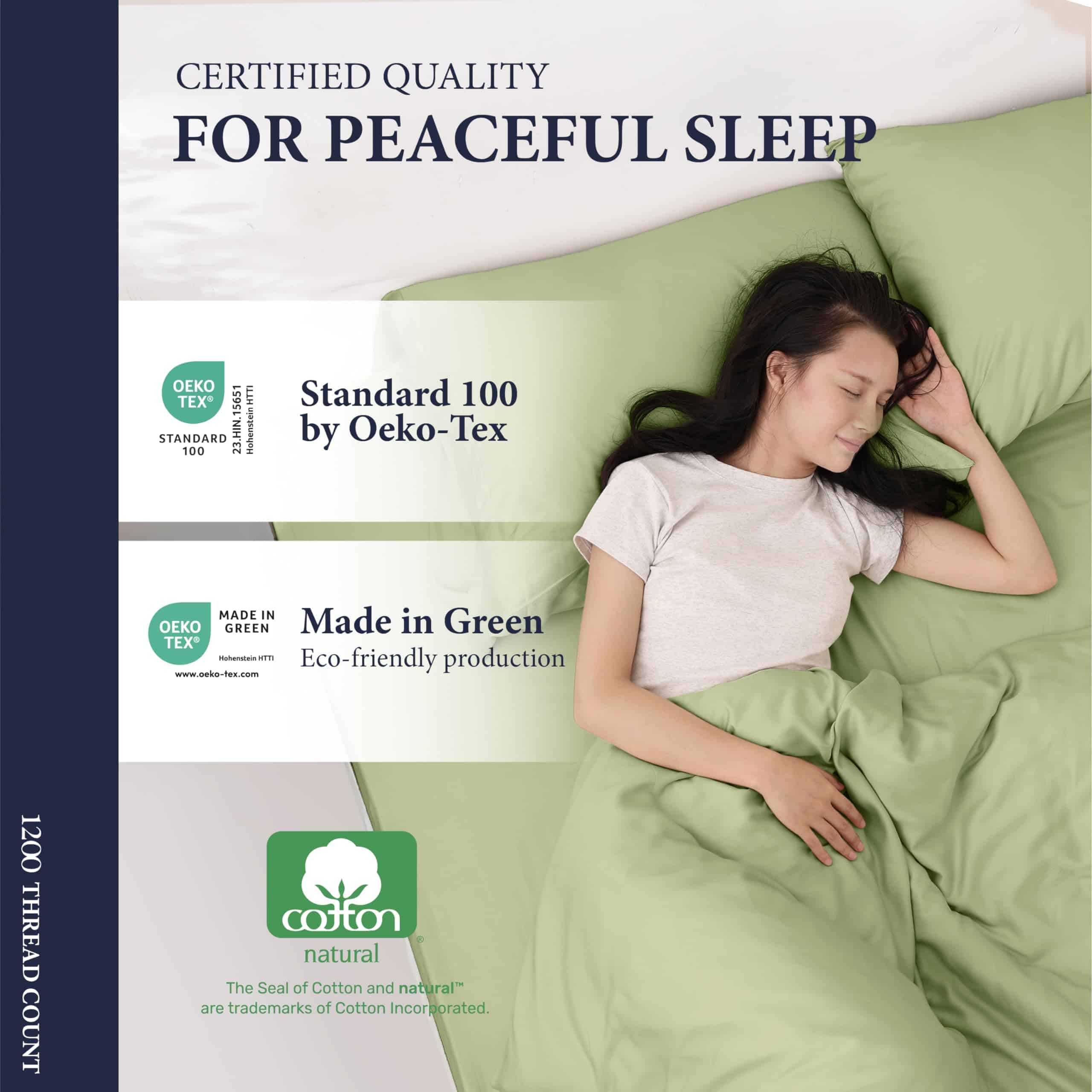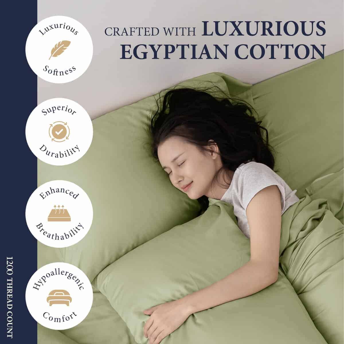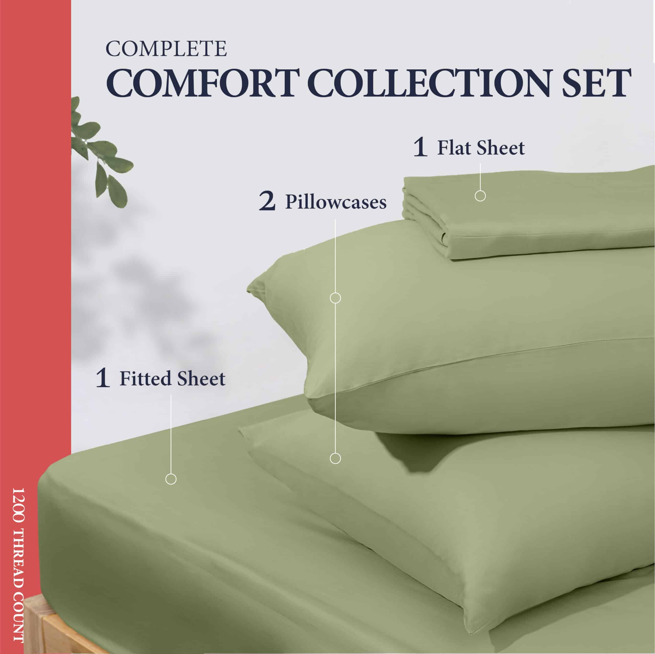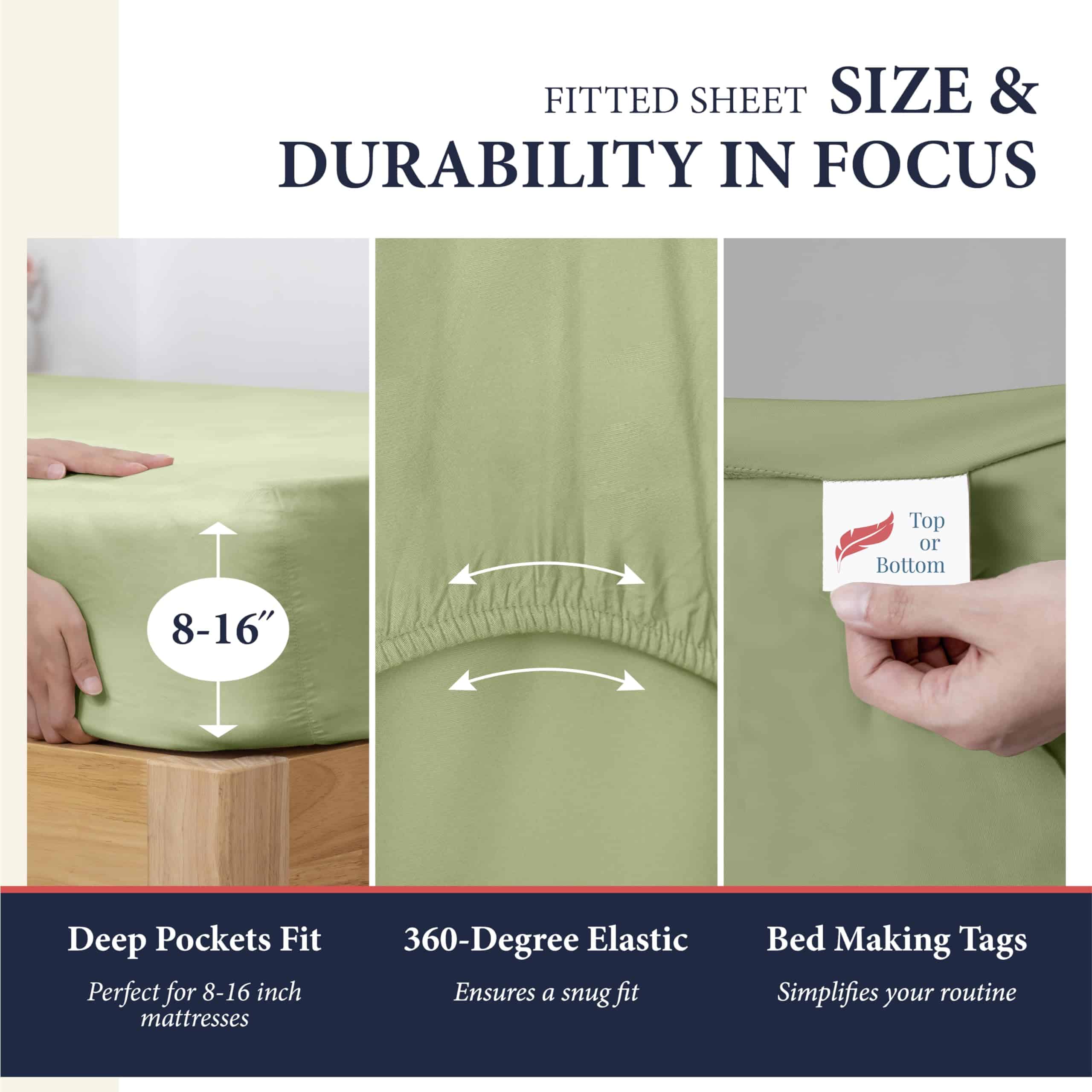 Juego de sábanas de algodón egipcio 100% -Verde Salvia