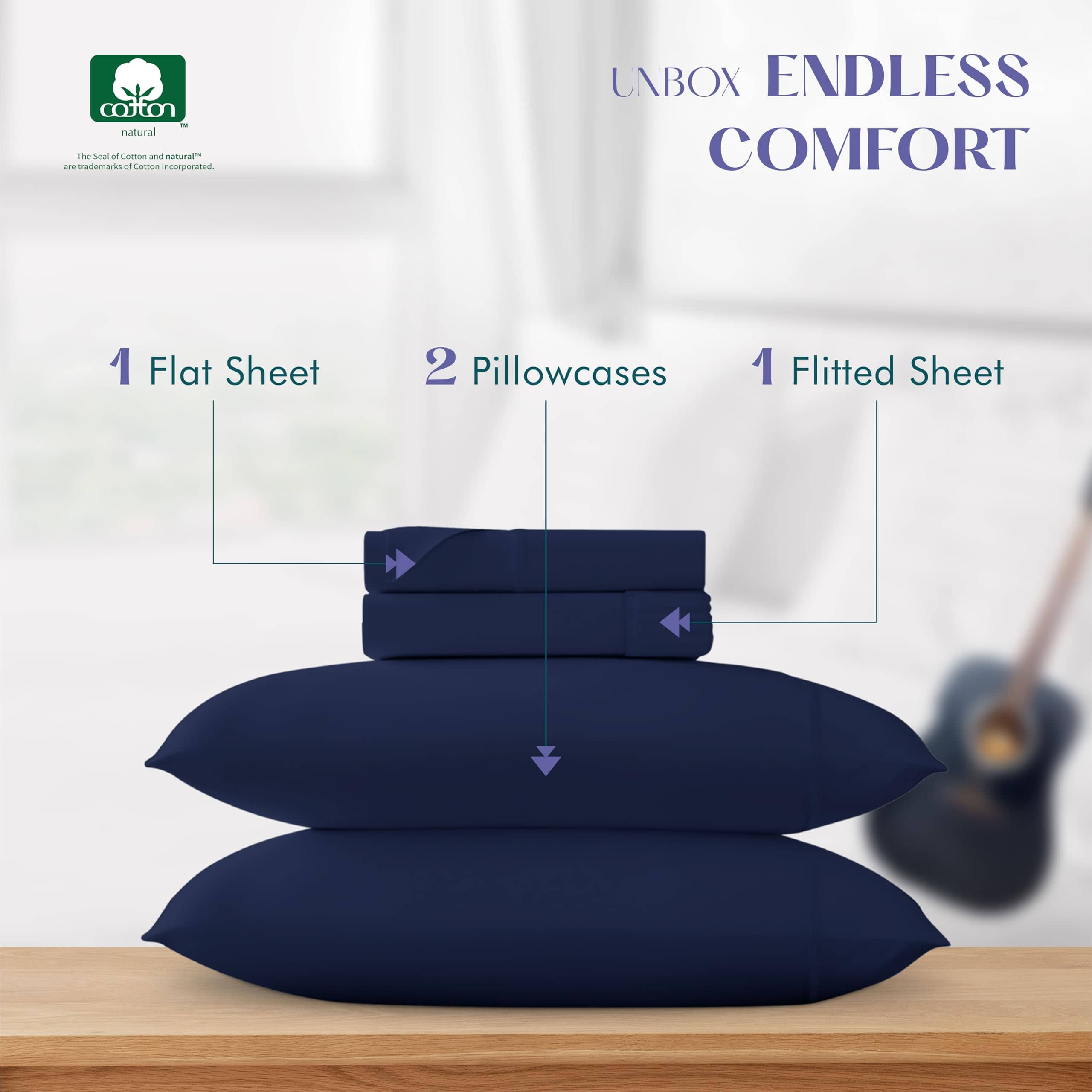 Juego de Sábanas de Algodón Egipcio -Azul Marino