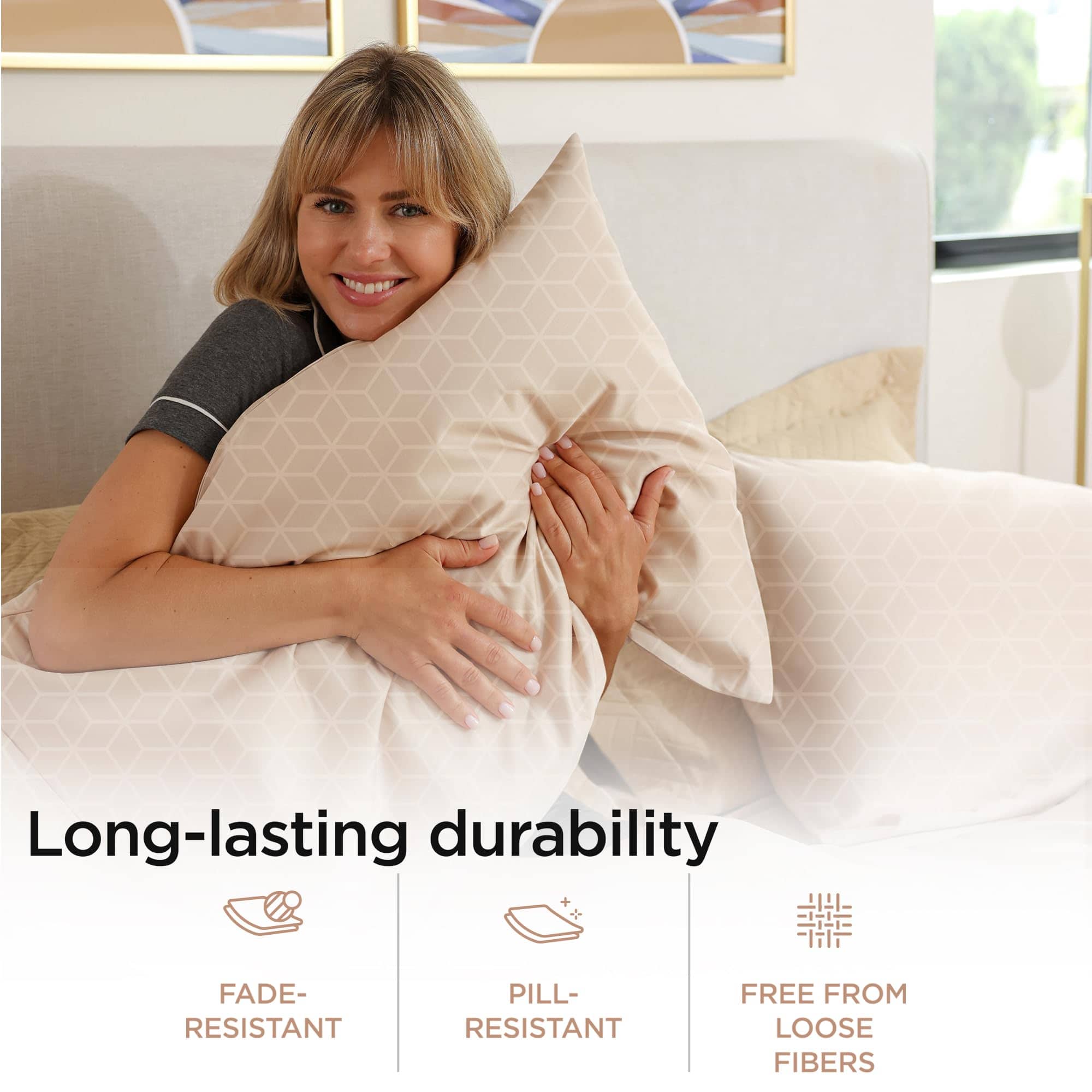 Juego de sábanas de algodón egipcio -Beige claro Cadence