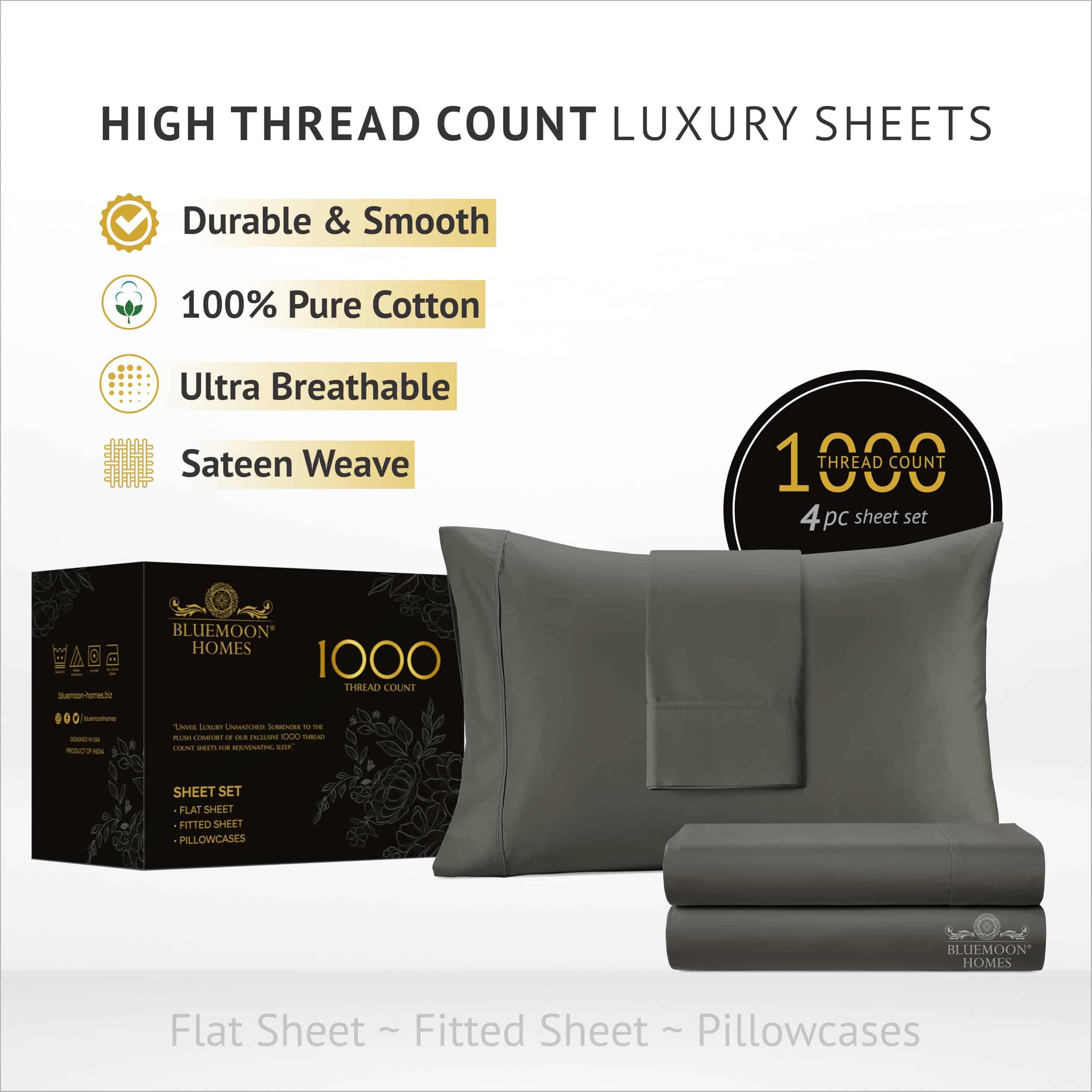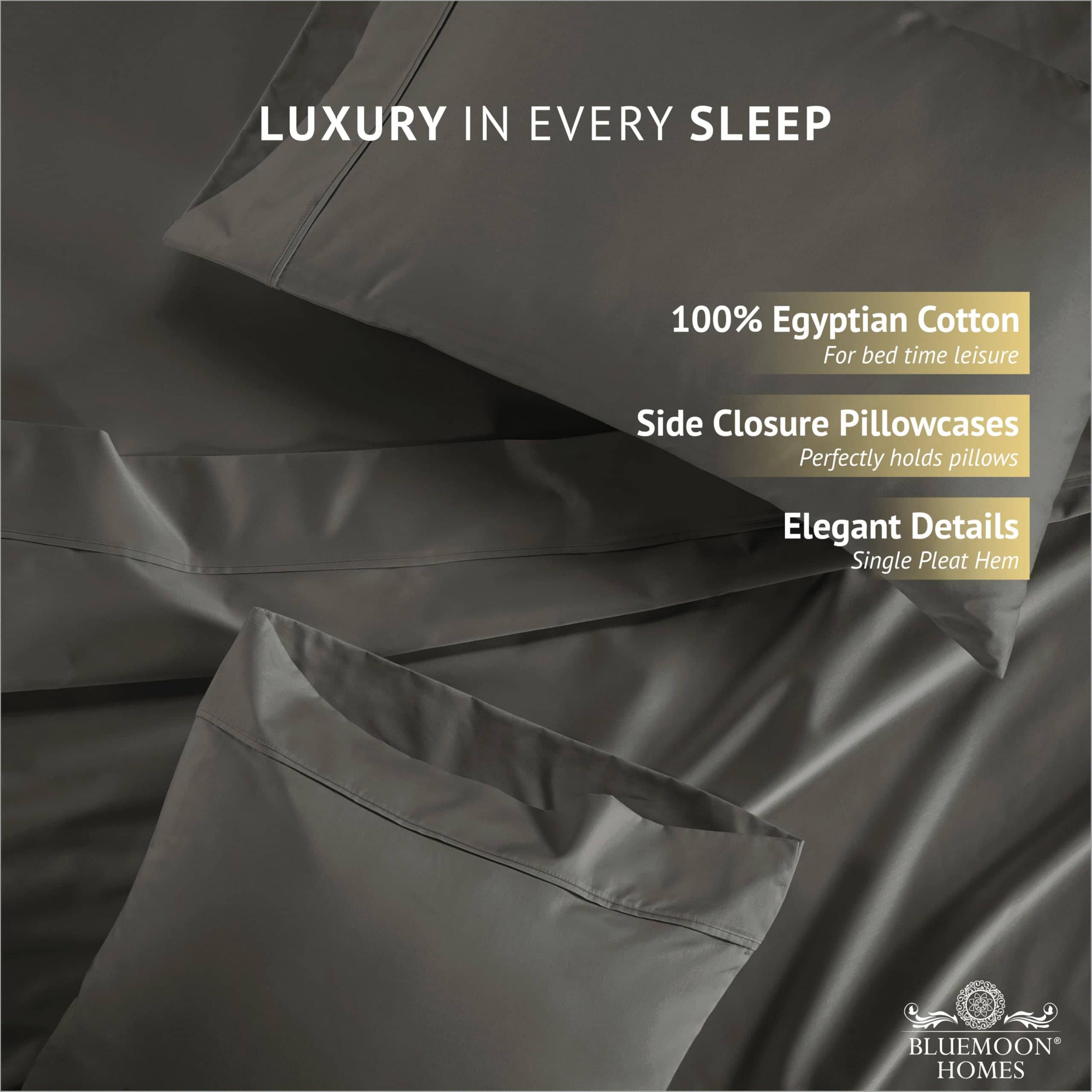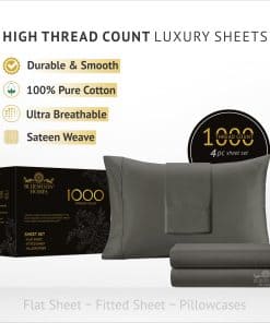 Juego de sábanas de algodón egipcio de 1000 -Gris oscuro
