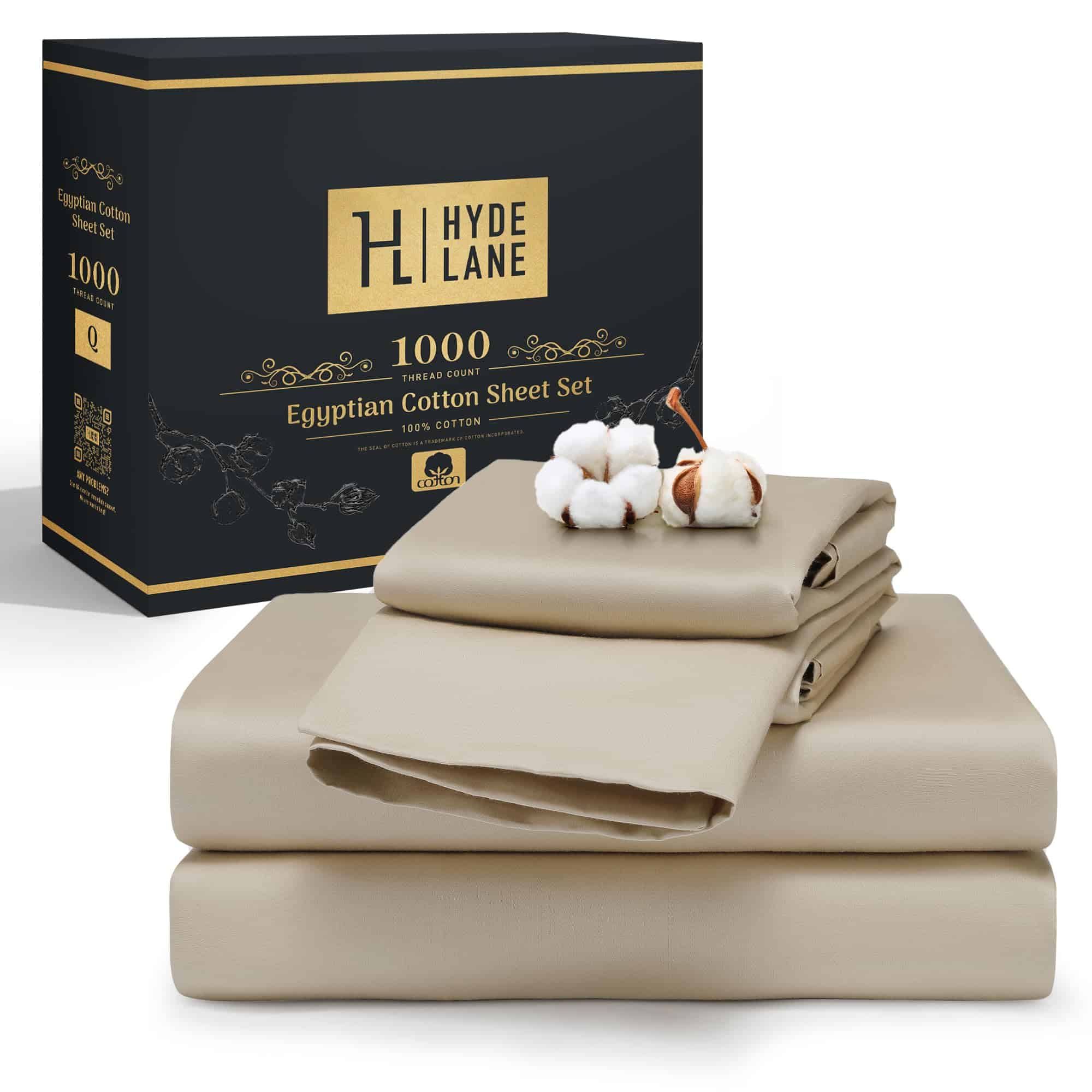 Hyde Lane 1000 Thread Count Egyptian Cotton Sheets, California King Size Sheet Set, 100% Pure Cotton Luxury Hotel Sateen Sheets Set, 18″ Deep Pockets Soft Sheets, 4PC (Cal King, Taupe)