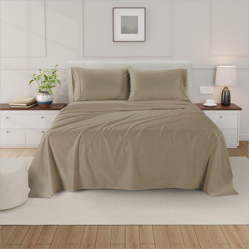 Juego de sábanas de algodón egipcio de 1000 -Taupe