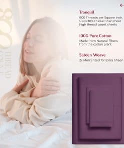 Juego de sábanas de algodón egipcio de 800 -Plum