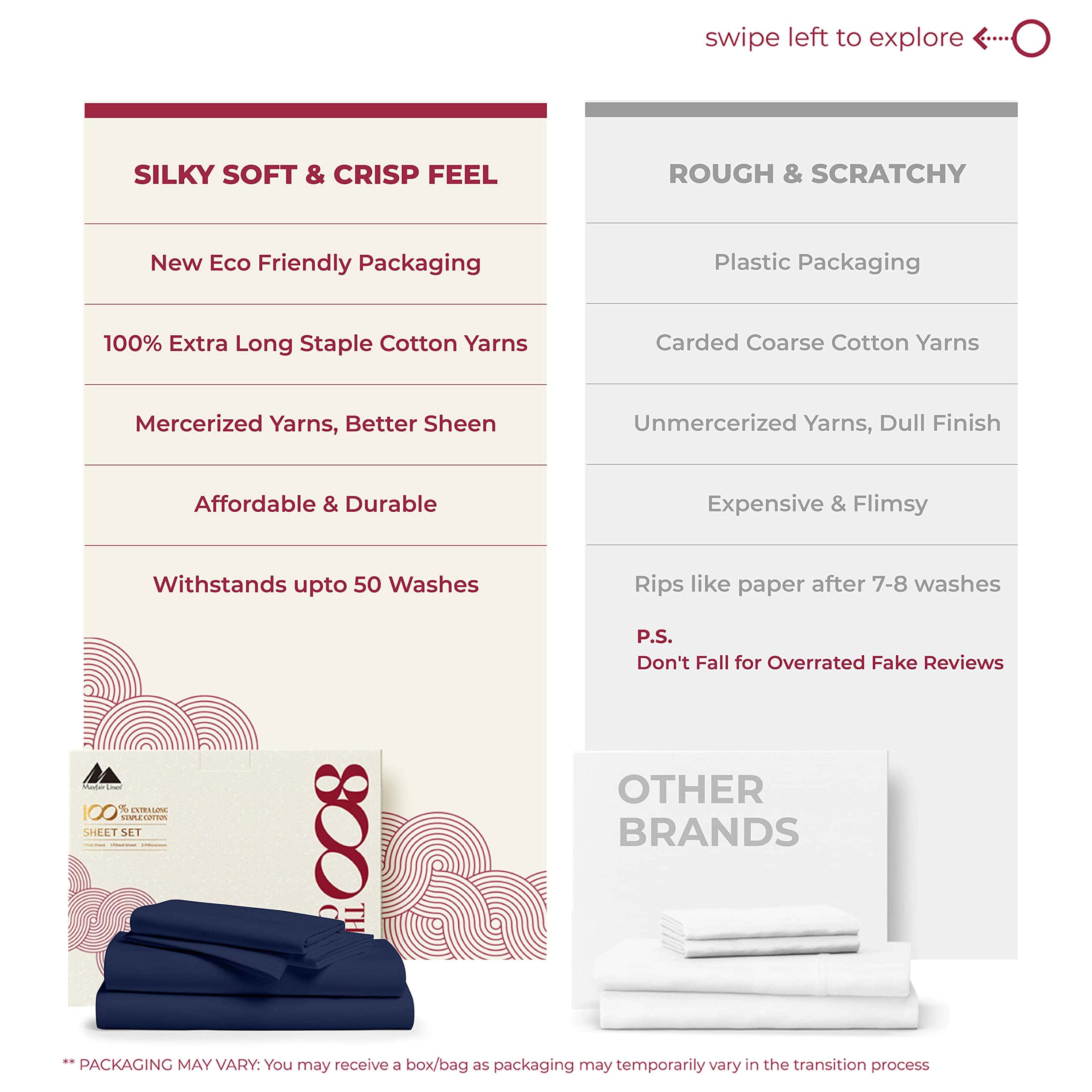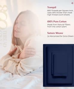 ¿Qué contiene nuestro conjunto de sábanas de 800 hilos 1 Sábana plana: 81″ de ancho x 96″ de largo 1 sábana ajustada: 54″ de ancho x 75″ de largo + 16″ de bolsillo profundo 2 fundas de almohada tamaño estándar/queen: 21″ de ancho x 32″ de largo Lo que hace que nuestras sábanas de algodón sean las más suaves y lujosas del mercado Cuanto más larga es la fibra, más suave es la tela. Utilizamos fibras de algodón extra largo para hacer las sábanas de algodón más suaves y acogedoras. 800 hilos se tejen en cada pulgada cuadrada de tela para mejorar la resistencia, la resistencia al pilling y al encogimiento, y la suavidad de la tela. Las sábanas de calidad de algodón egipcio luego son mercerizadas para un tacto más suave, un brillo aumentado y para hacer que los colores parezcan más brillantes que las sábanas de algodón regulares. ¿Son comparables a la ropa de cama de hotel cinco estrellas Sí. El tejido satinado proporciona un tacto suave y sedoso que se siente similar a la textura de las sábanas de hotel de cinco estrellas. Estas sábanas de algodón al 100% son suaves, frescas y transpirables, como las que descansas en un hotel de cinco estrellas. ¿Son estas sábanas más duraderas que otras sábanas de algodón Se puede decir que sí. Las sábanas hechas de algodón de fibra extra larga tienden a deshilacharse menos, pilling menos, arrugarse menos para durar más que otras sábanas de algodón, sábanas de microfibra y sábanas de poliéster. ¿Cómo hacemos sábanas que se ajustan perfectamente a tu cama Cada sábana ajustada tiene elástico de 360 grados y bolsillos extra profundos para adaptarse a todos los colchones de hasta 18 pulgadas de profundidad. Las etiquetas inteligentes indican los lados de largo y ancho para que puedas hacer la cama fácilmente. Las fundas de almohada tienen cierres estándar, para que las almohadas permanezcan dentro de la funda ¿Por qué más de 1 millón de clientes confían en nosotros Cada paso de nuestro proceso es sostenible y ético para todos. Eso significa que nuestras sábanas de 800 hilos para tamaño completo se obtienen de forma natural sin químicos, sintéticos y organismos modificados genéticamente. Estamos certificados según el estándar 100 por oeko-tex, lo que significa que nuestro juego de sábanas de algodón está libre de productos químicos dañinos y tintes textiles. Por último, todo nuestro embalaje es libre de plástico, lo que nos convierte en una opción ecológica y sostenible.