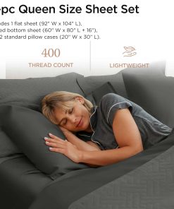 Ropa de cama auténtica de algodón egipcio para un dormir cómodo y saludable: Diga adiós a las noches calurosas e insomnes añadiendo nuestras suaves y suaves sábanas de 400 hilos a tu colección de ropa de cama. Creadas con auténticos hilos de algodón egipcio extra largo, estas opulentas sábanas cuentan con el sello dorado de autenticidad acreditado, a diferencia de las sábanas de algodón egipcio no auténticas en el mercado. Este juego de sábanas de tejido de satén proporciona un confort y durabilidad excepcionales, haciéndolas completamente valiosas. Bolsillos profundos para sábanas frescas: Mantenga los sudores nocturnos a raya con nuestras sábanas de 400 hilos ligeras y refrigerantes. Cada juego de sábanas Queen de 4 piezas incluye 1 sábana plana (92″ W x 104″ L), 1 sábana ajustable (60″ W x 80″ L + 16″ bolsillo profundo) y 2 fundas de almohada estándar (20″ W x 30″ L). La sábana inferior elástica se mantiene debajo durante toda la noche, permitiéndole dormir tranquilamente. Su bolsillo profundo de generosas dimensiones abraza rápidamente incluso a los colchones más altos. Calidad excepcional, sábanas lavables a máquina a un precio inmejorable: Hechas con los materiales y la artesanía de mayor calidad, nuestras elegantes sábanas valen cada centavo. Cada sábana está tejida expertamente para garantizar resistencia al pilling, resistencia a la decoloración y resistencia duradera. Nuestras sábanas premium se vuelven más suaves y conservan el color con cada lavado. Para evitar el encogimiento y las arrugas, lave las sábanas a máquina a temperatura ambiente, séquelas a baja temperatura y dobla ordenadamente de inmediato. Acentúa tu decoración de dormitorio con elegancia: Nuestra gloriosa gama de algodón egipcio está pensada para la experiencia definitiva en el dormitorio. Ya sea añadir un toque de lujo pastel a tu habitación o contrastarla con un toque de color, estas elegantes sábanas son todo lo que necesitas. Junto con sus colores divinos, estos juegos de ropa de cama traen consigo una comodidad superior para lavar todo tu cansancio. Prácticas certificadas y sostenibles con garantía de satisfacción del 100%: Nos enorgullecemos de crear algunos de los linos más finos del mundo respetando el medio ambiente. Nuestros productos y prácticas están libres de productos químicos dañinos, obteniendo la certificación OEKO TEX. Todas estas sábanas premium se fabrican en una fábrica impulsada por energía eólica y solar. Se empacan en una bolsa de algodón reutilizable sin plástico y se entregan con una garantía de satisfacción del 100%, brindándote un servicio al cliente excepcional.