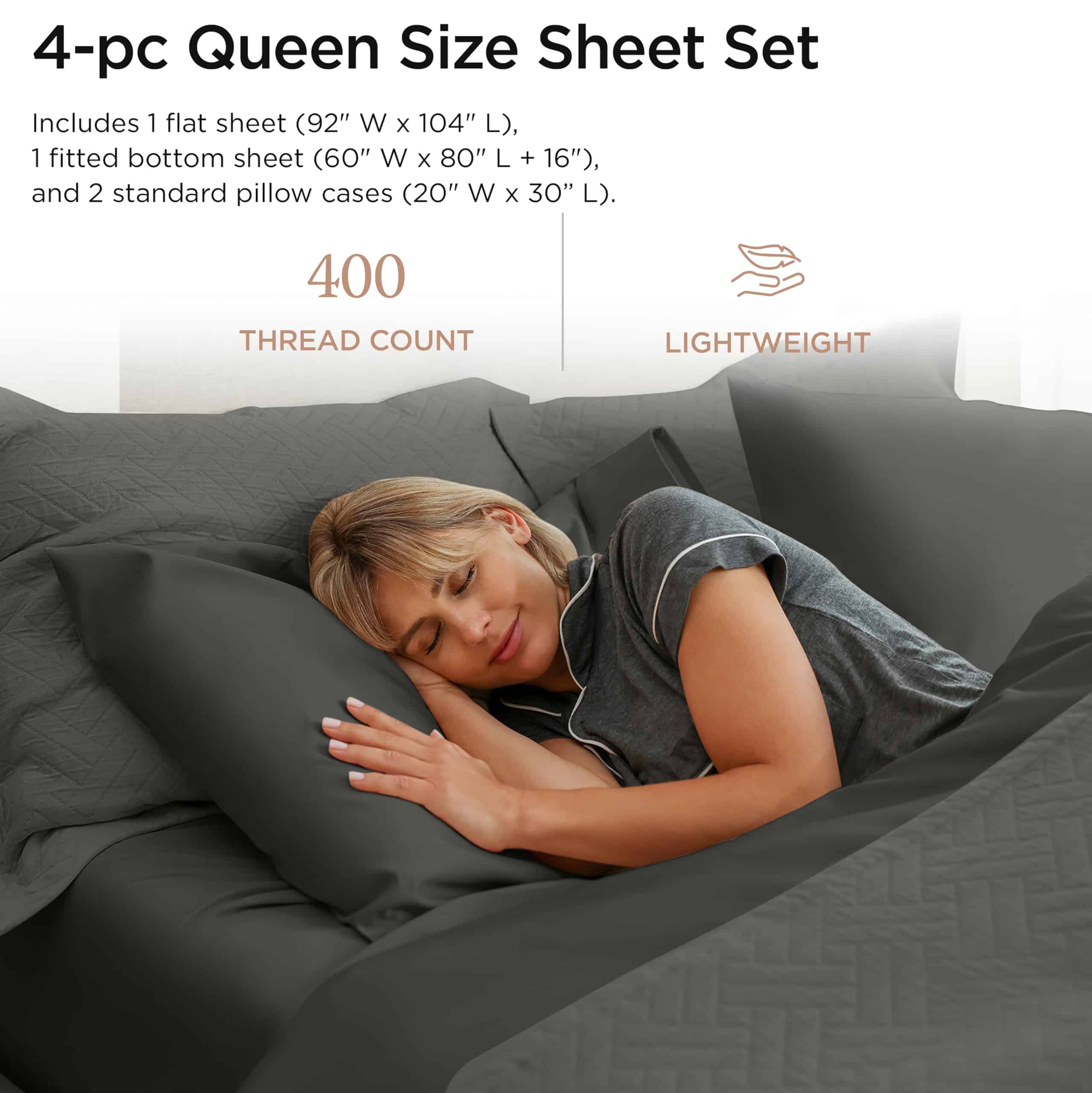 Juego de sábanas de algodón egipcio -Gris oscuro