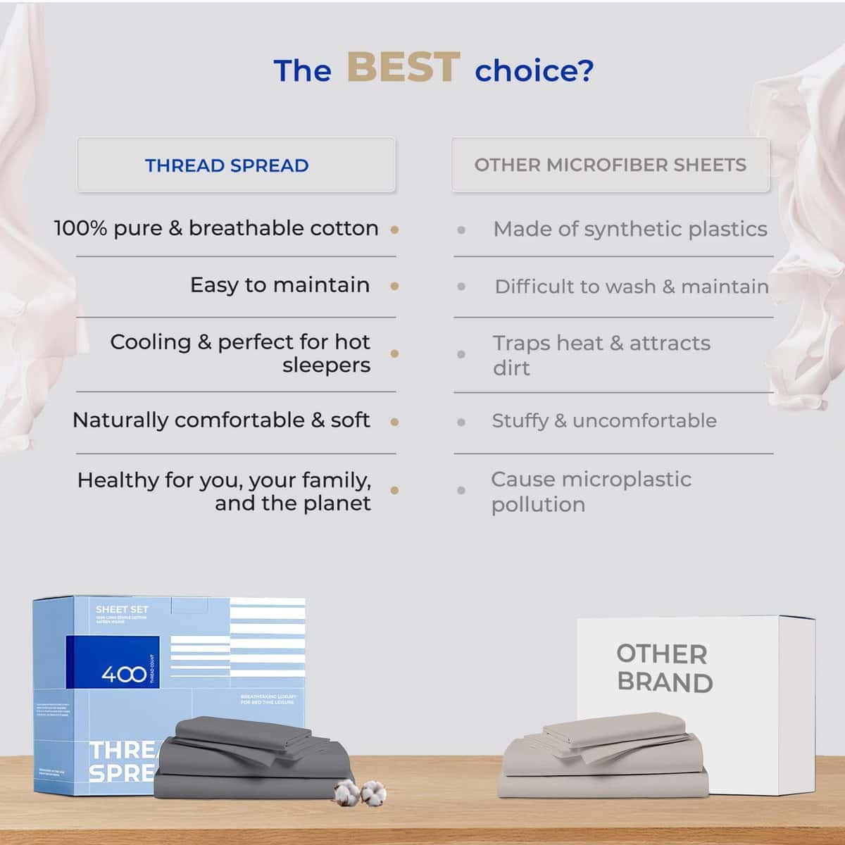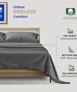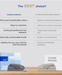 1. Sábanas de algodón mercerizado 100% para una suavidad y brillo mejorados: Nuestros juegos de sábanas de 400 hilos están hechos de algodón mercerizado para un brillo aumentado y colores más brillantes que no se desvanecen ni hacen bolitas después de varios lavados. El tratamiento mercerizado mejora la resistencia de la tela y produce un brillo satinado para una sensación suave y sedosa. Además, el algodón es naturalmente bueno para ti y te mantiene fresco, ligero y transpirable por la noche, especialmente en clima cálido.