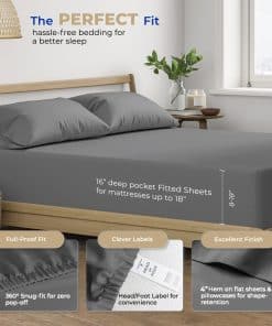 2. Todo está en los detalles: Hechos a mano por artesanos, nuestros juegos de sábanas de algodón egipcio de alta calidad tienen un dobladillo detallado de 4 pulgadas en la sábana plana y bolsillos profundos de 16 pulgadas en la sábana ajustable para un lujo similar al de un hotel. El pespunte overlock evita el deshilachado en los extremos de la tela. Nuestro juego de sábanas twin xl incluye 3 piezas: 1 sábana plana | (66″ W x 96″ L), 1 sábana ajustable | (39″ W x 80″ L + 16″), y 1 funda de almohada Queen/Standard (21″ W x 32″ L).