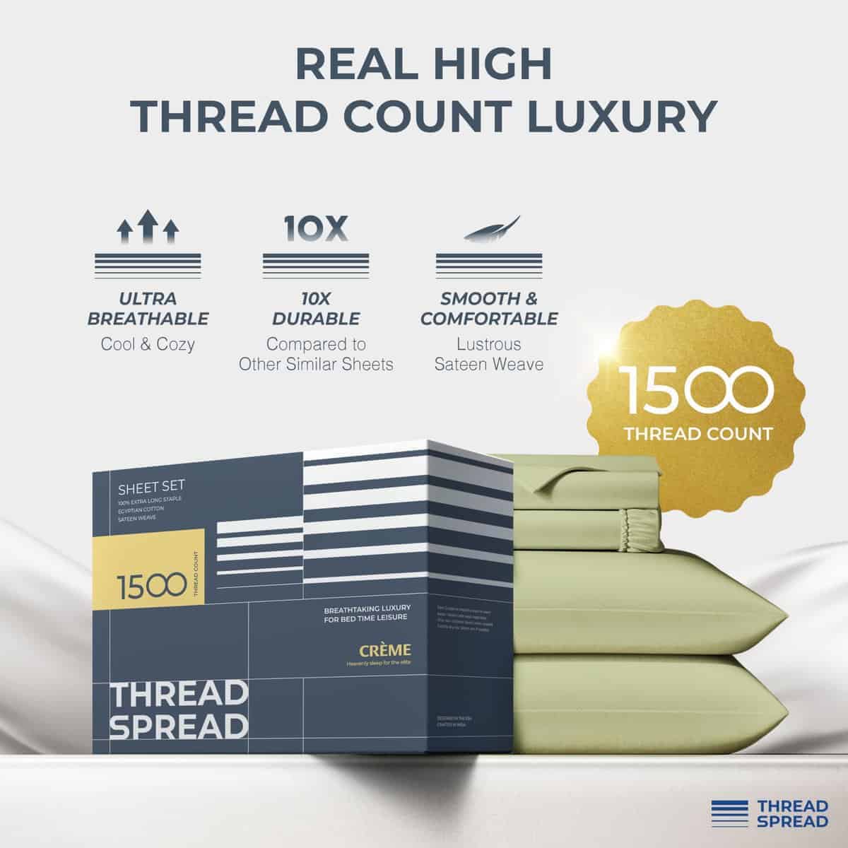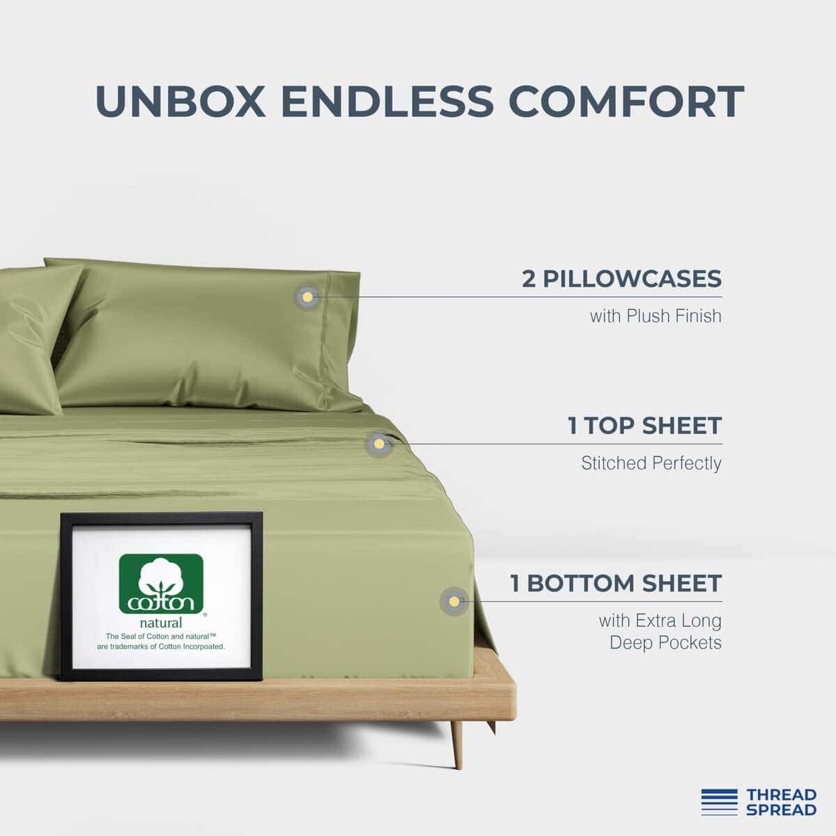 Juego de sábanas de algodón egipcio THREAD -Verde Salvia