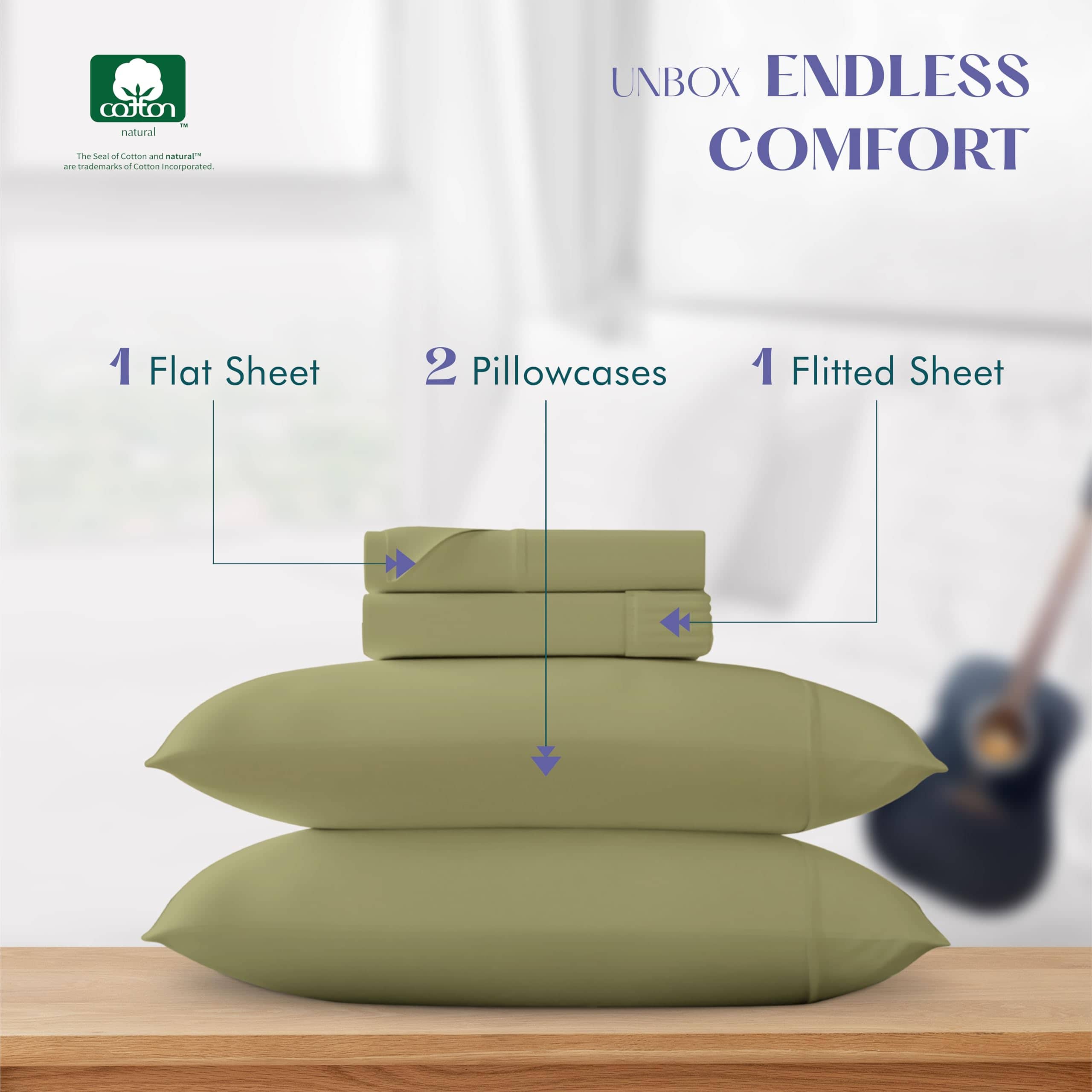 Juego de sábanas de algodón egipcio -Verde Salvia