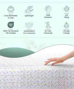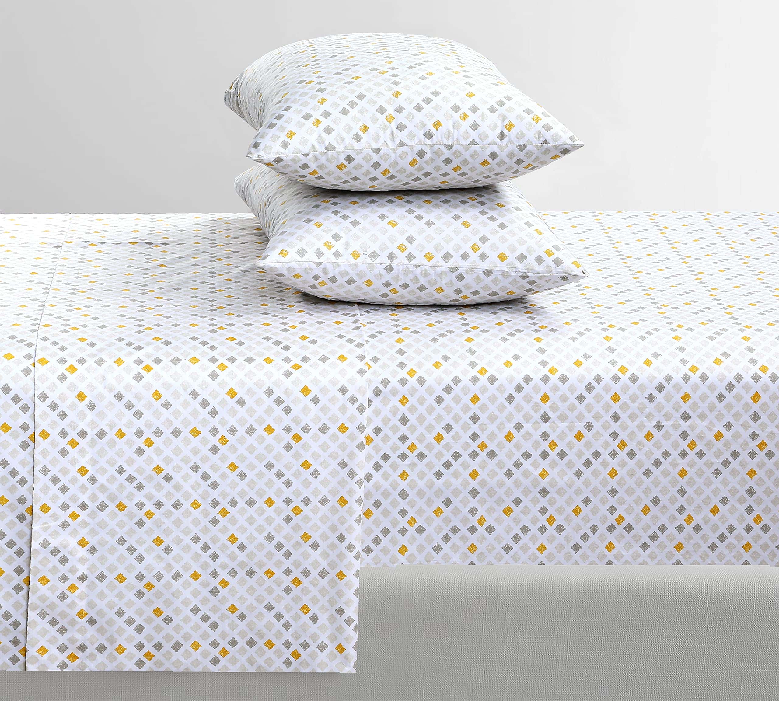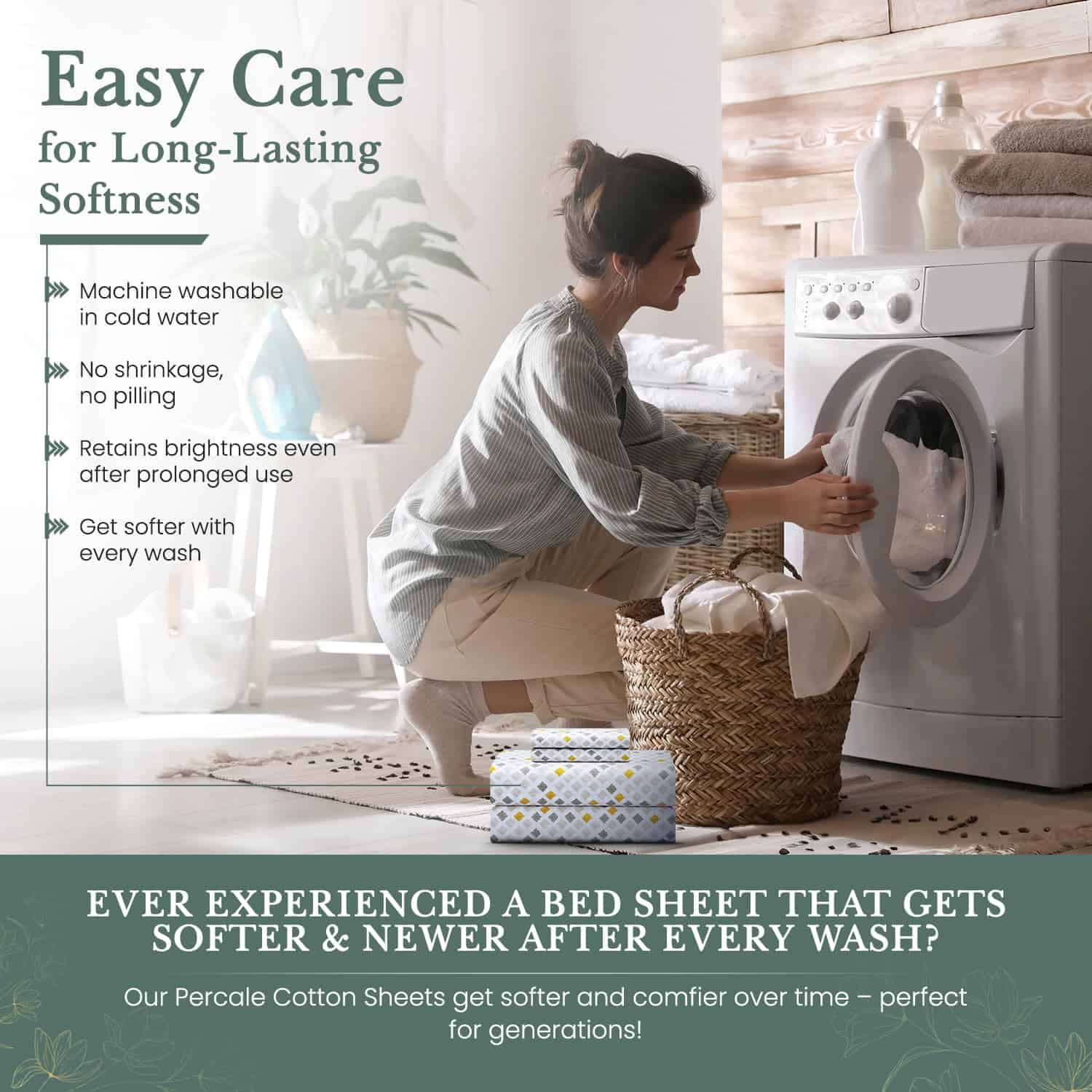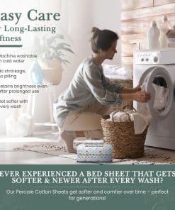 Juego de sábanas de algodón Feather & Stitch, elige la comodidad y la calidad para tus noches de descanso. Estas sábanas de algodón 100% tienen un tejido de percal suave y duradero que ofrece una sensación nítida y un acabado mate. Más duradero que el satén, el percal se vuelve aún más suave con cada lavado, sin formar bolitas, decolorarse o rasgarse. Este juego de sábanas incluye 1 Sábana Ajustable (152×203 cm) con un bolsillo profundo de 40 cm, 1 Sábana Plana (229×259 cm) y 2 Fundas de Almohada Estándar (51×76 cm) para una cama queen. El algodón percal es conocido por ser transpirable y fresco al tacto, lo que evita el sobrecalentamiento y la sudoración durante la noche, para que puedas dormir cómodamente en cualquier estación. Con una amplia gama de colores y patrones para elegir, nuestras sábanas de percal clásicas pueden mezclarse, combinarse o superponerse para lograr un aspecto único en tu dormitorio. El cuidado de estas sábanas es fácil, basta con lavar a máquina en agua fría, no usar lejía, secar a baja temperatura y lavar los colores oscuros por separado. Fabricamos estas sábanas sin tintes, lo que garantiza que mantengan su tono brillante incluso después de un uso prolongado. Sorprende a tus amigos y familiares con estas sábanas increíblemente suaves y hermosas, respaldadas por un servicio al cliente excepcional que garantiza tu satisfacción. El juego de sábanas está diseñado para adaptarse a colchones de hasta 40 cm de profundidad, con una tela suave y resistente que es resistente a la decoloración, los desgarros y las roturas. Además, son transpirables y cómodas para dormir. Regala este juego de sábanas de alta calidad en cualquier ocasión y disfruta de la frescura y la comodidad que te brindan estas lujosas sábanas de algodón percal.
