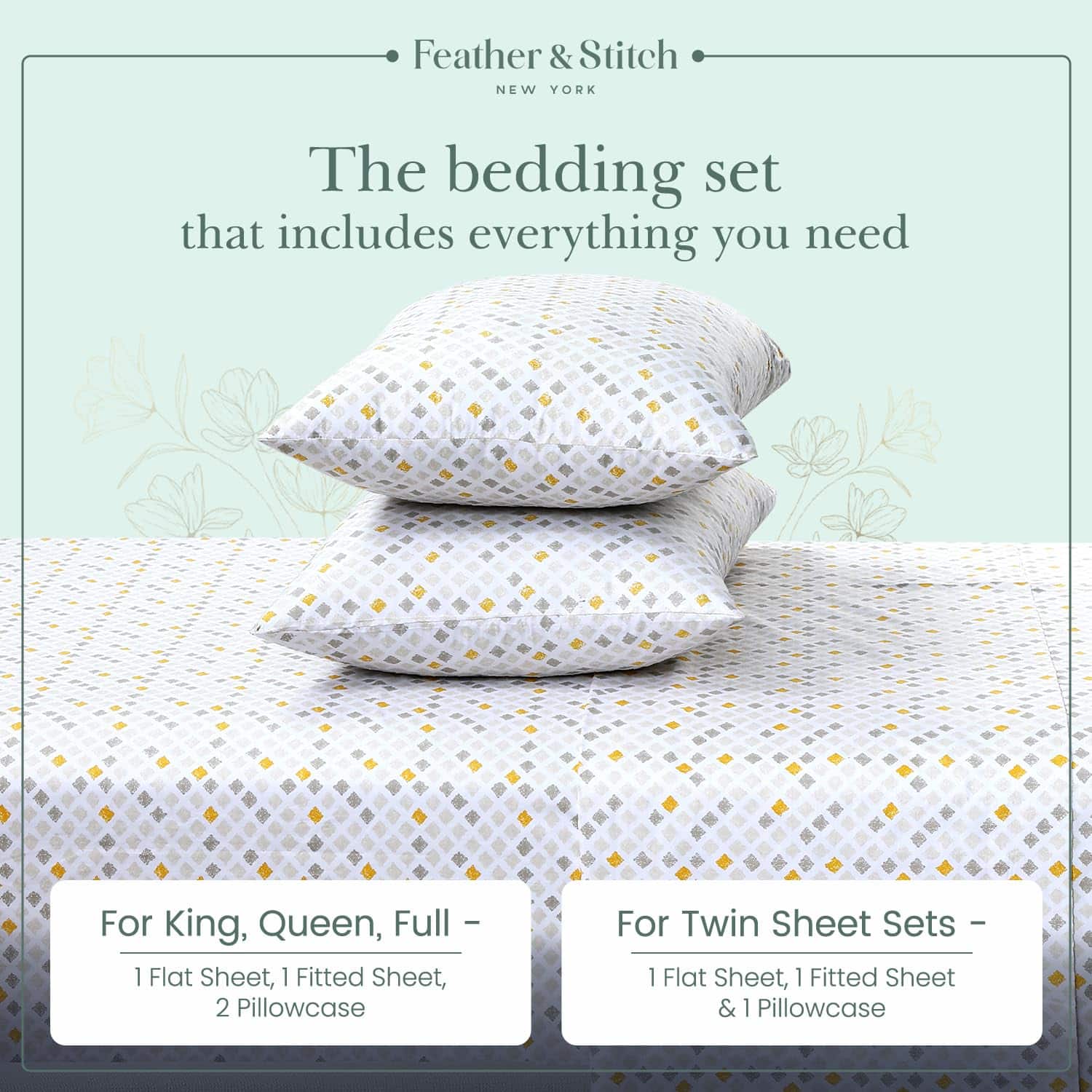 Juego de sábanas de algodón Feather & Stitch, 100% suaves,
