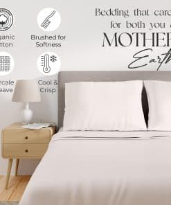 Nuestro juego de sábanas king incluye 1 sábana plana (108 pulgadas de ancho x 102 pulgadas de largo), 1 sábana ajustable (78 pulgadas de ancho x 80 pulgadas de largo) y 2 fundas de almohada tamaño king (40 pulgadas de ancho x 20 pulgadas de largo) para satisfacer tus necesidades. La sábana ajustable cuenta con tecnología True Grip patentada, que consiste en un elástico en los bordes de 1 pulgada de ancho junto con elástico de ½ pulgada en la caída, proporcionando un ajuste ceñido con diferentes grosores de colchones. Además, presenta una «Etiqueta Inteligente de Cabeza/Pie» para facilitar la identificación de los lados. Las sábanas de enfriamiento, confeccionadas con un tejido percal, son conocidas por su durabilidad notable y su excepcional comodidad. Son convenientemente lavables a máquina, manteniendo su color y suavizándose con cada lavado. Sin embargo, para mantener alejadas las arrugas, retira rápidamente las sábanas y las fundas de almohada de la secadora o pásalas con plancha. Ropa de cama fácil de cuidar para estilos de vida ocupados. Nuestro producto está certificado por el Global Organic Textile Standard, Orgánico, CU 807480. La familia SUPREME ELEGANCE que incluye Purity Home está fabricada con materiales premium y sostenibles para una experiencia de vida refinada y ecoconsciente.