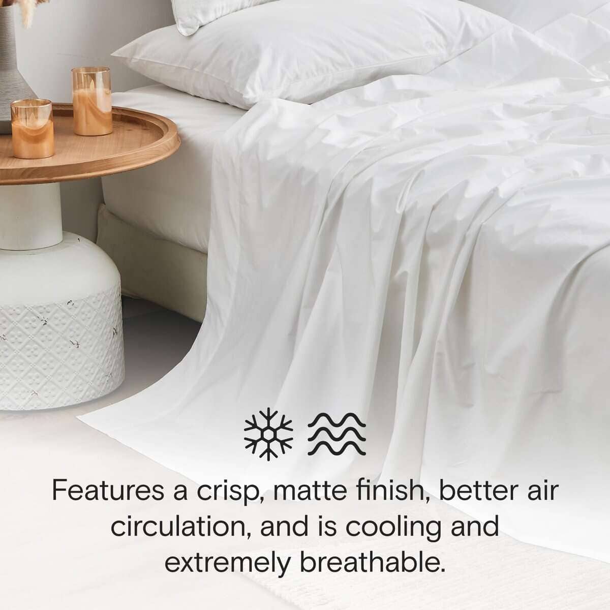 4. REFRIGERACIÓN: El tejido de percal es transpirable, se siente suave contra la piel y le da a las sábanas una sensación liviana y una apariencia más estructurada que las sábanas con un tejido de satén. Nuestras sábanas de percal orgánico se apartan de la piel para permitir una mejor circulación del aire y un rendimiento refrescante y fresco. Las personas que tienden a sudar o sentir calor por la noche apreciarán la calidad aireada de estas sábanas.