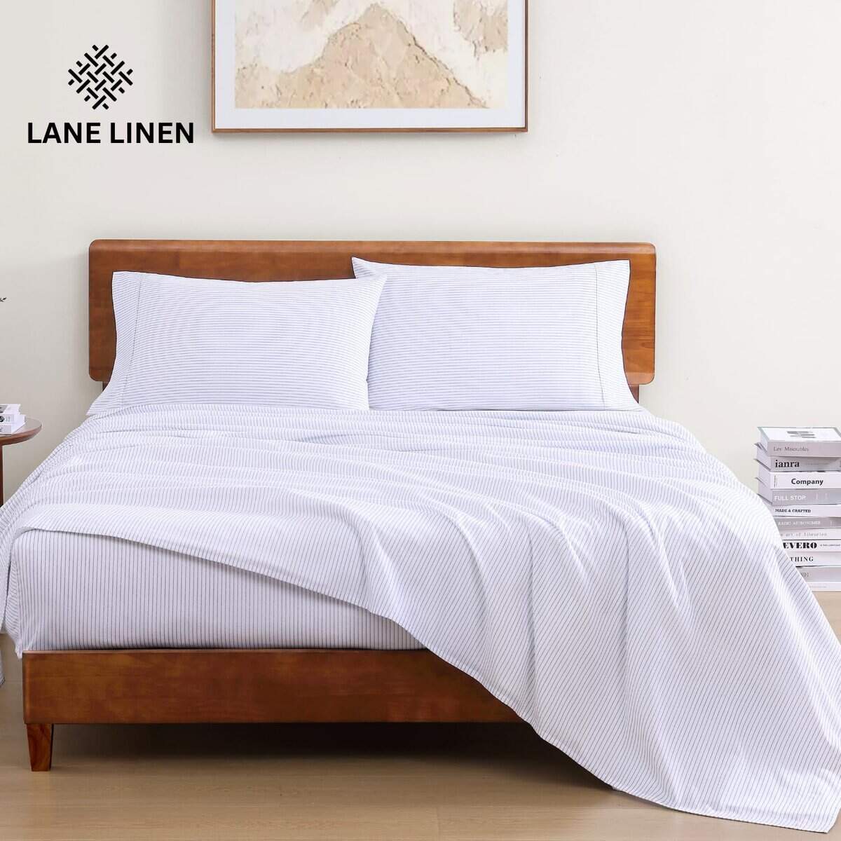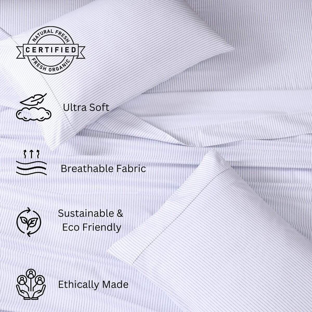 Juego de sábanas de algodón orgánico 100% -Rayas Azules Tick