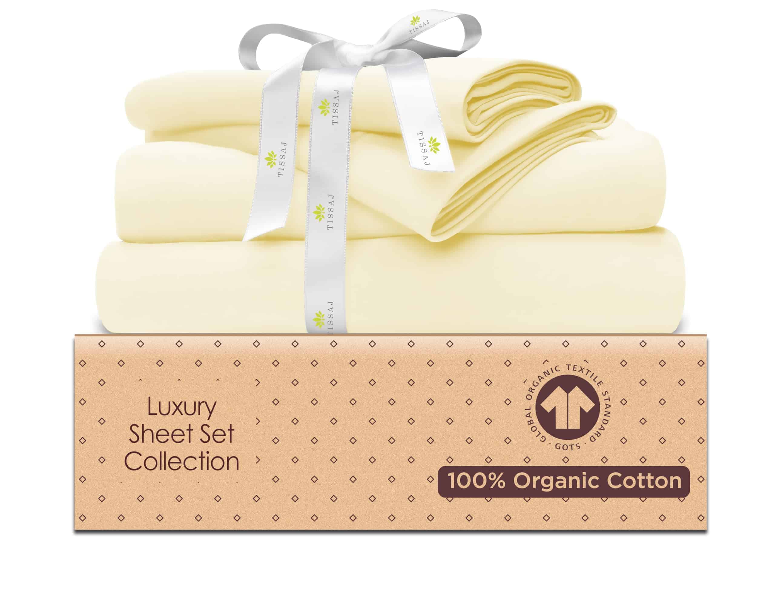 1. 100% ALGODÓN ORGÁNICO CERTIFICADO: Disfruta del lujo del Juego de Sábanas de Algodón Orgánico de Tissaj, elaborado con algodón 100% orgánico certificado por GOTS. Estas sábanas son no tóxicas y libres de químicos, garantizando un entorno de sueño seguro y saludable para toda tu familia. Naturalmente transpirables y cultivadas sin productos químicos dañinos, estas sábanas ofrecen un confort y tranquilidad inigualables. Perfectas para los consumidores eco-conscientes, nuestras sábanas proporcionan un tacto lujoso prioritizando tu salud y el medio ambiente.