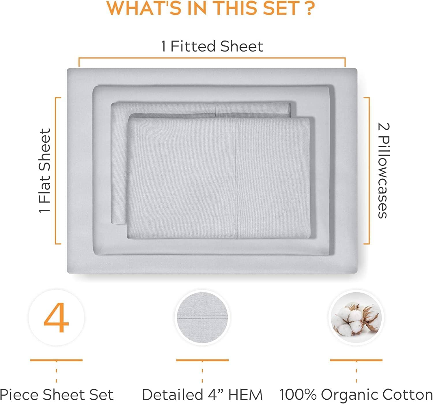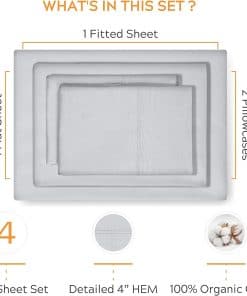 Juego de sábanas de algodón orgánico premium -Gris Claro