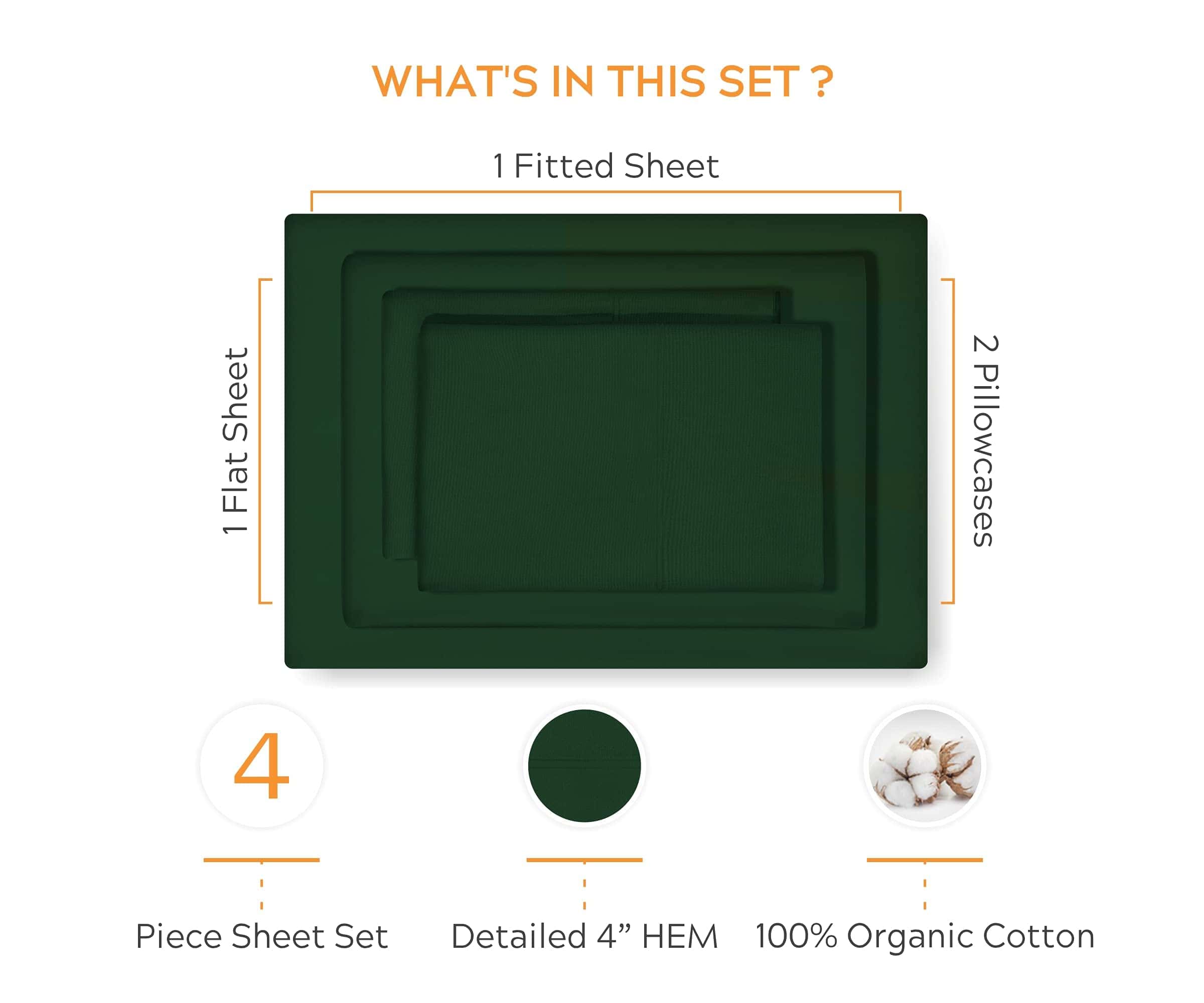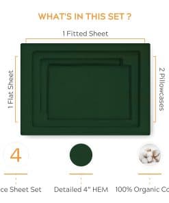 Juego de sábanas de algodón orgánico premium -Verde Cazador
