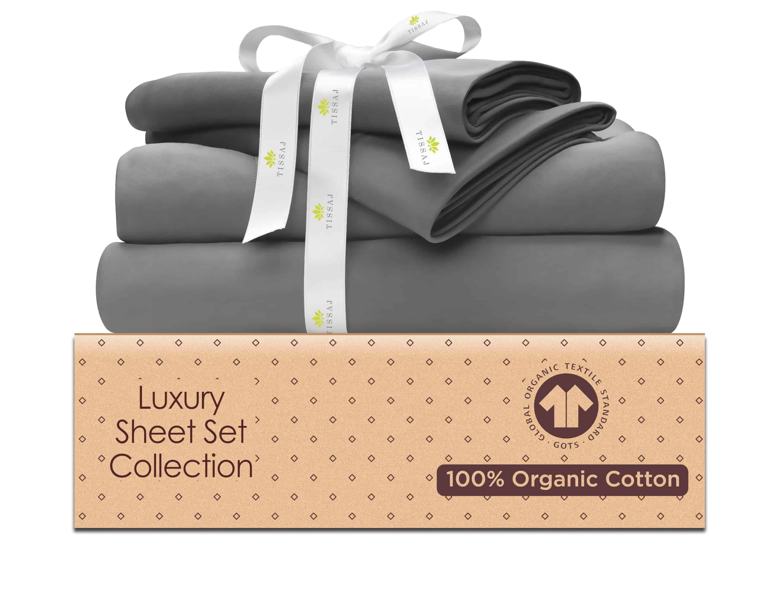 Juego de Sábanas de Algodón Orgánico Tissaj -Gris Humo