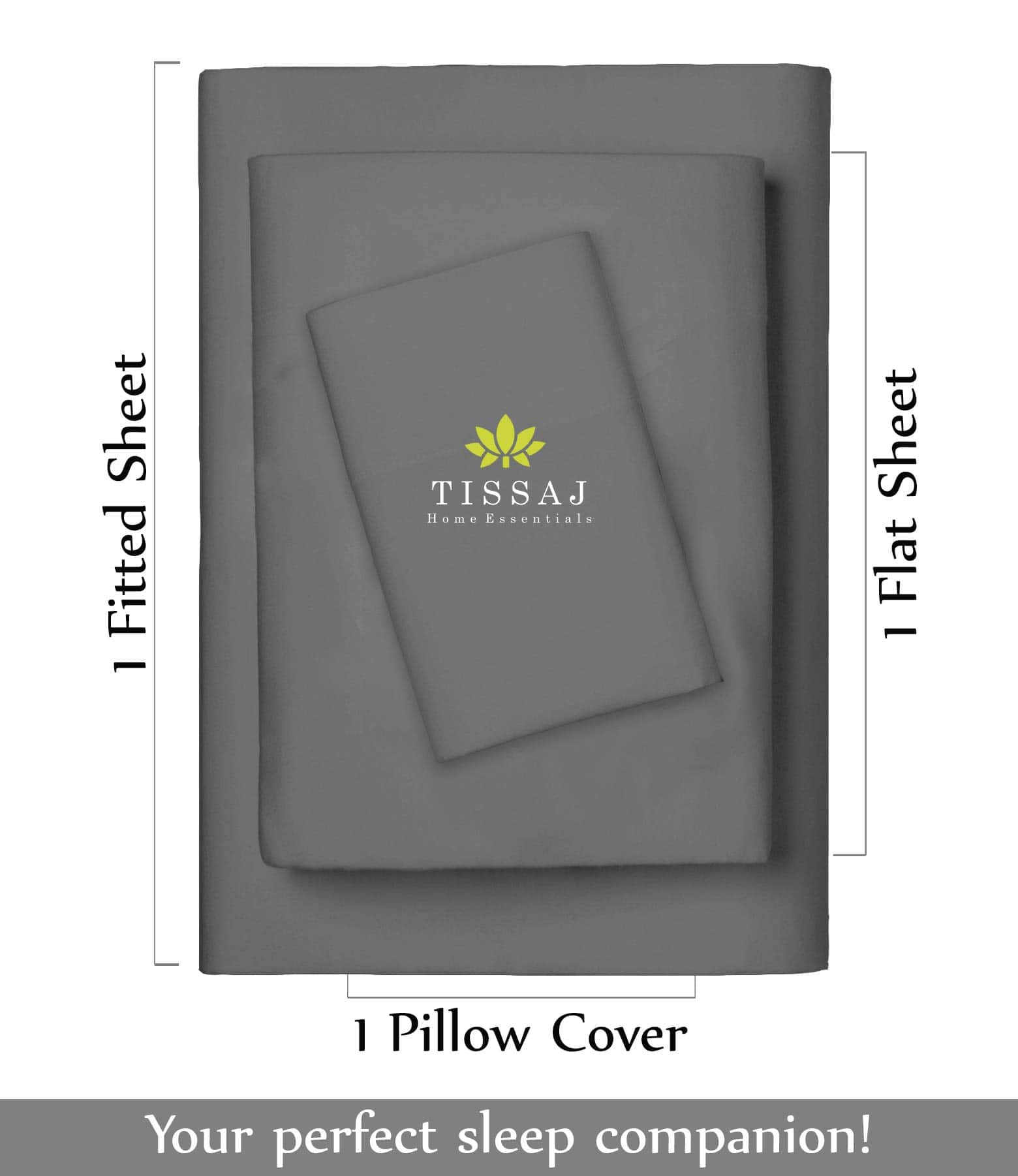 3. AJUSTE PERFECTO CON BOLSILLOS EXTRA PROFUNDOS DE 16: El juego de sábanas tamaño Twin de Tissaj está diseñado para un ajuste perfecto, con bolsillos extra profundos de 16 pulgadas y elástico de alta calidad de 12 mm alrededor. Esto garantiza un ajuste seguro y ceñido en tu colchón, evitando cualquier deslizamiento o agrupamiento. El juego incluye una sábana plana (67 x 97 ), una sábana ajustable (39 x 75 x 16 ), y una funda de almohada (21 x 31 ). La sábana ajustable también tiene una etiqueta inteligente en la parte inferior para un ajuste sin complicaciones, haciendo que hacer la cama sea pan comido y asegurando una apariencia suave y ordenada.