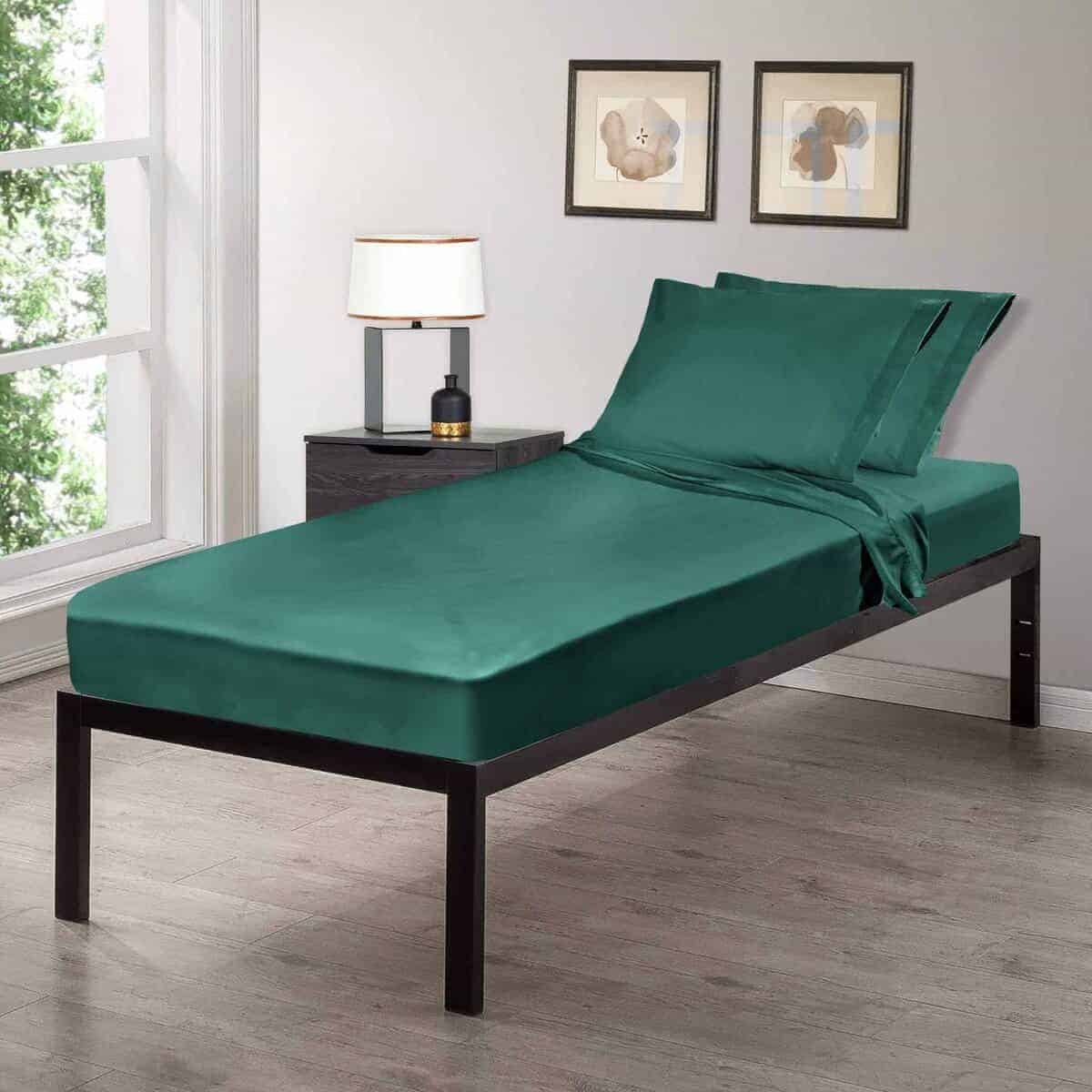 Nuestro juego de sábanas Twin XL para dormitorio universitario está hecho de una mezcla de poliéster y algodón, lo que las hace sentir y lucir bien al mismo tiempo. Ofrecen una increíble y cómoda sábana ajustable extra larga. Nuestra sábana ajustable para dormitorio universitario está dimensionada a 39 pulgadas de ancho, 80 pulgadas de largo y 15 pulgadas de alto. Instrucciones de cuidado: lavable a máquina, secar en secadora. Permanecen suaves y lujosas con menos del 1% de contracción. Más resistente que cualquier otra en el mercado. Perfecto para camas Twin XL en dormitorios universitarios y otros. Lo que recibirá en el paquete: Una sábana ajustable, una sábana plana, dos fundas de almohada